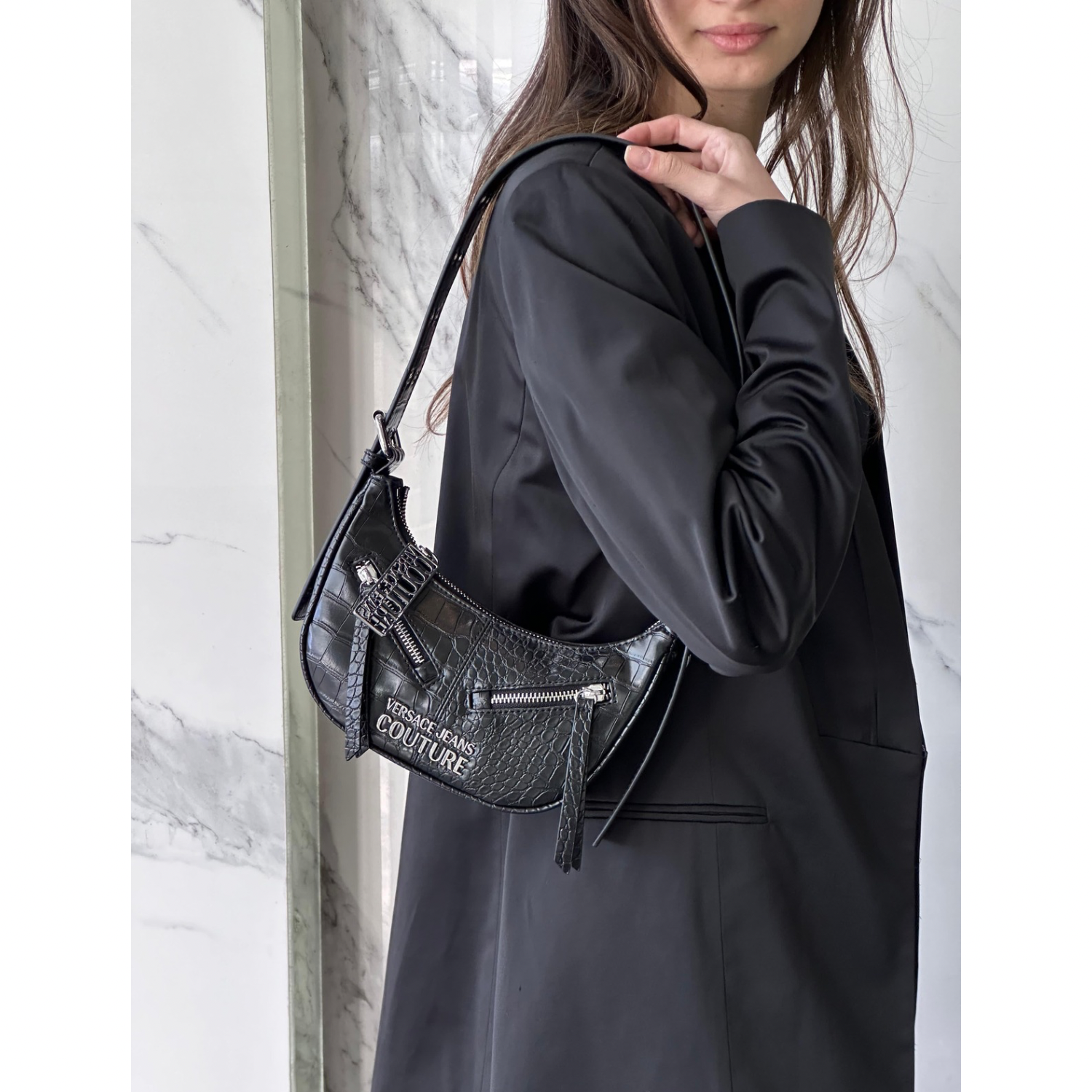 VERSACE JEANS COUTURE CROCO SHOULDER BAG