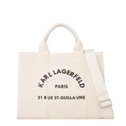 Expertly crafted by KARL, the ST-GUILLAUME SQUARE MEDIUM TOTE BAG is a versatile and stylish addition to any wardrobe. Made of durable beige canvas, it's the perfect size for everyday use. With its square shape and luxurious design, this tote bag is both functional and fashionable.