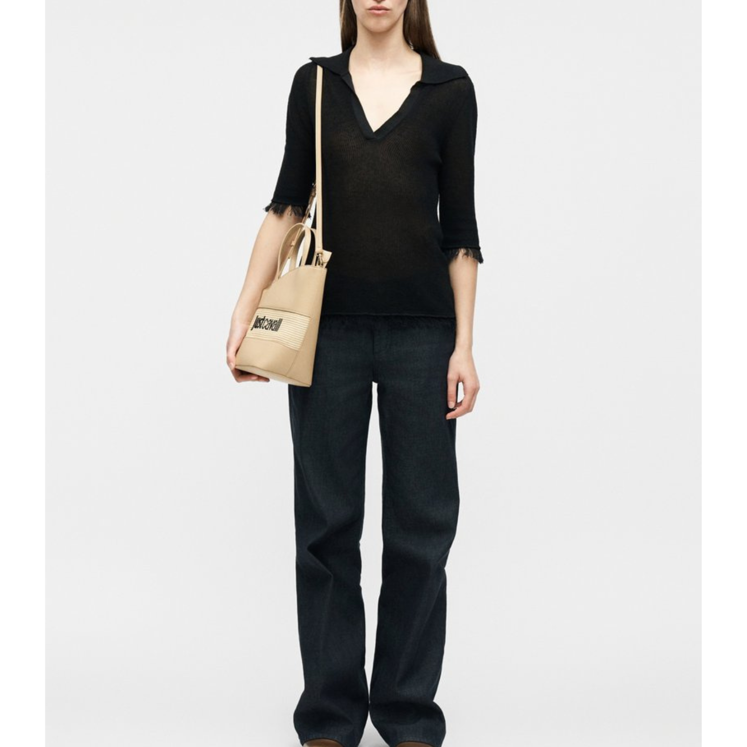 JUST CAVALLI LOGO BLACK HANDBAG