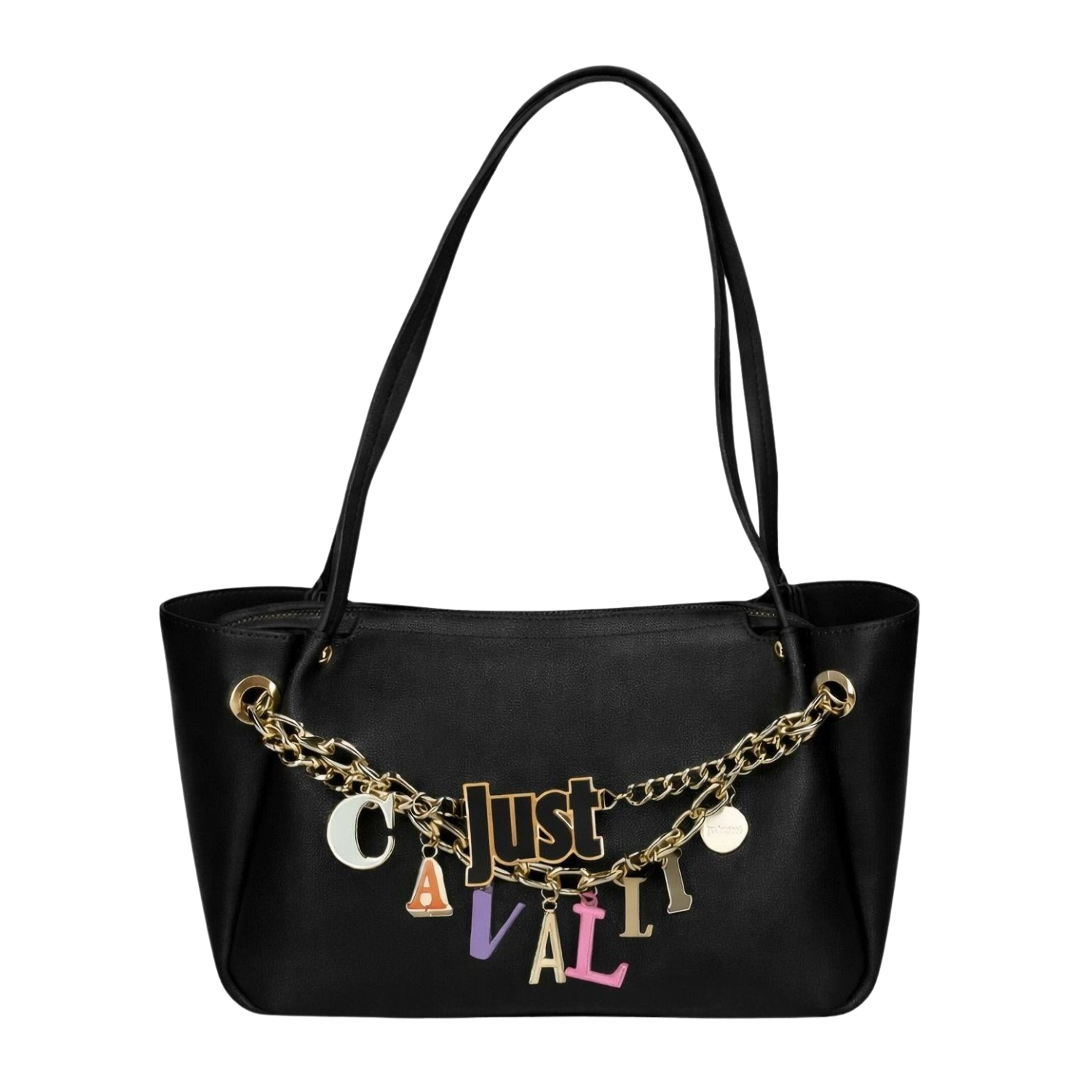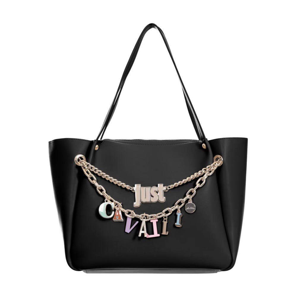 JUST CAVALLI BLACK LEATHER WITH CHARMS TOTE BAG