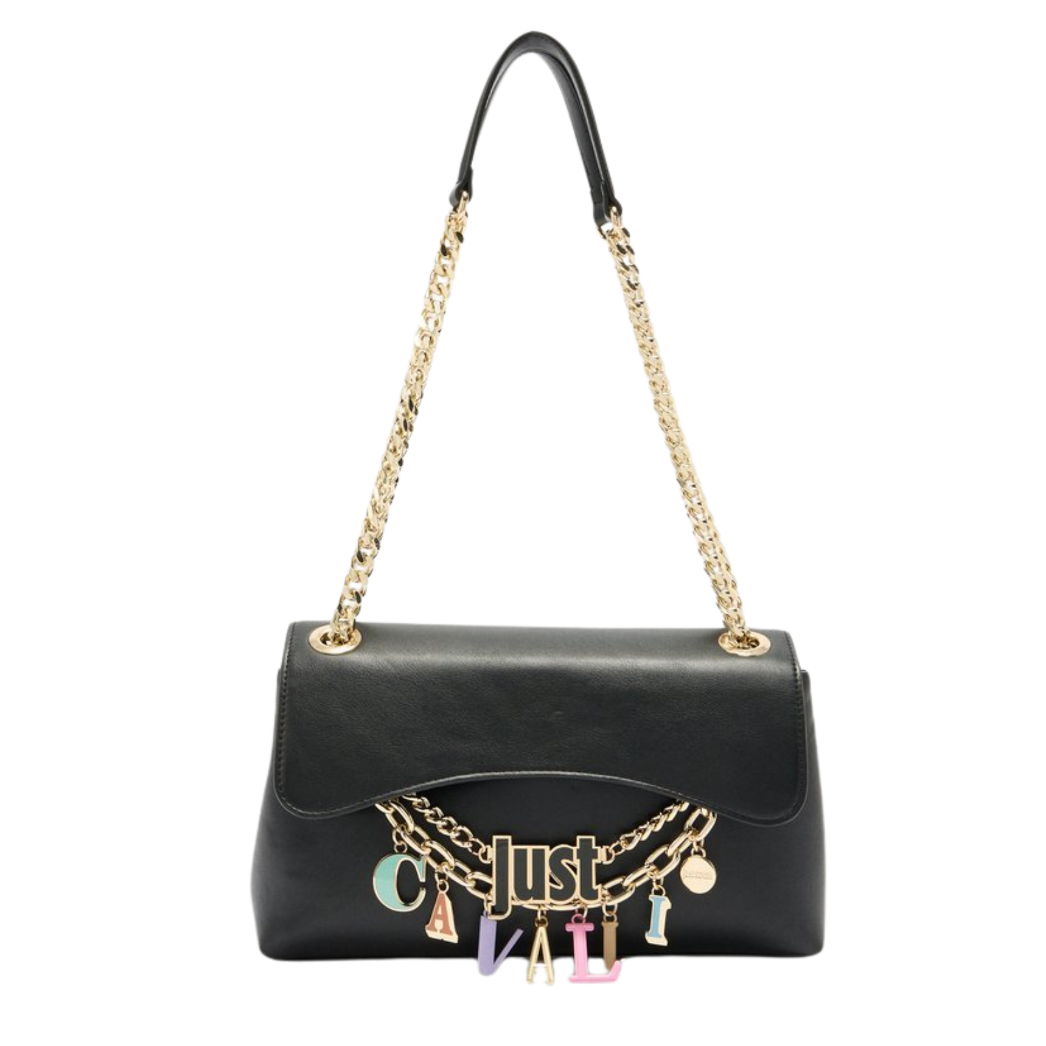 JUST CAVALLI BLACK LEATHER WITH CHARMS FLIP BAG