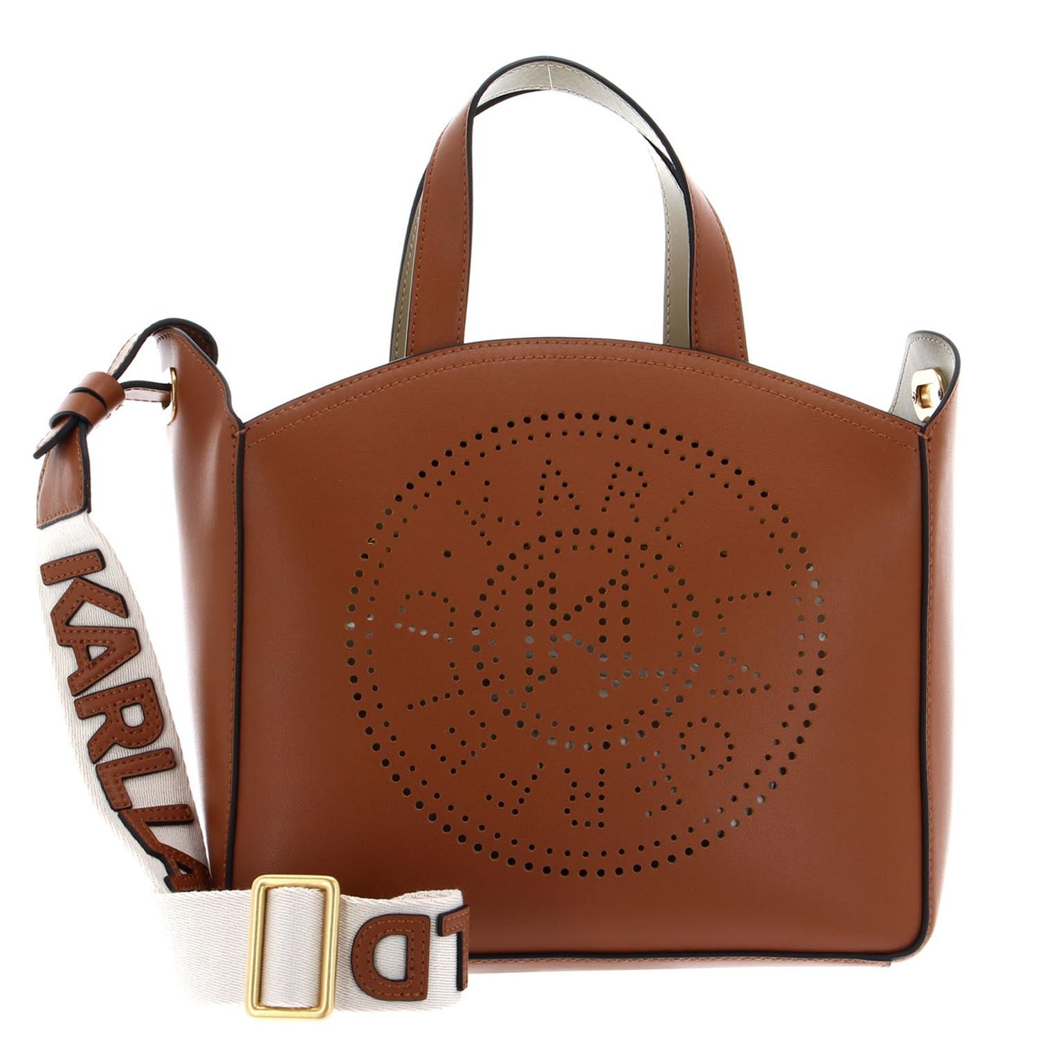 KARL LAGERFELD K/CIRCLE PERFORATED BROWN TOTE BAG