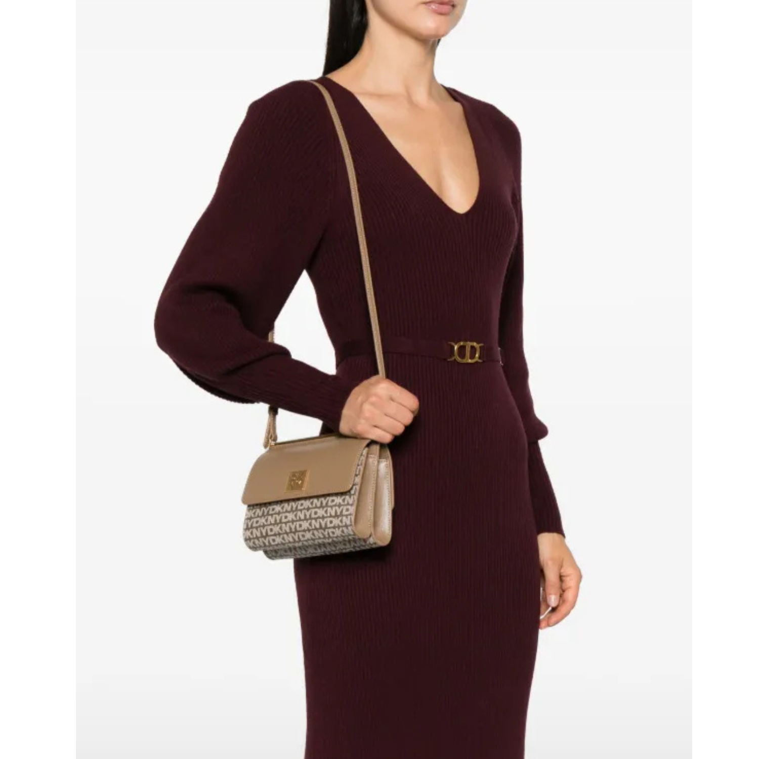DKNY LEATHER MONOGRAM NUDE CROSSBODY BAG
