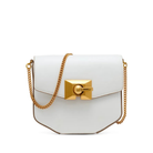 • Elevate your accessory collection with this DKNY mini chain bag featuring a sophisticated white and gold palette. The elegant chain strap transitions effortlessly between shoulder and crossbody wear, while the compact design focuses on essentials without sacrificing style. Gold-tone hardware provides luxurious contrast against the crisp white exterior, creating a refined aesthetic suitable for both daytime sophistication and evening glamour. Precision craftsmanship ensures this piece remains a versatile staple for the style-conscious individual.