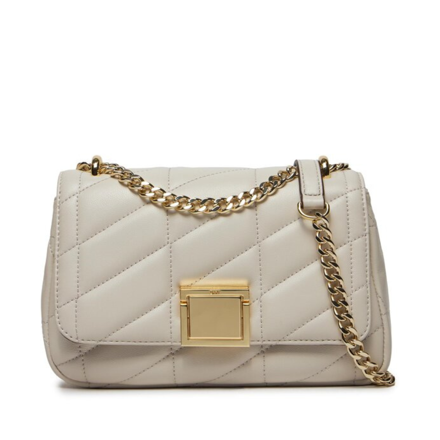 Expertly crafted with white leather and gold detailing, the DKNY Shoulder Bag exudes sophistication and elegance. Its spacious design and durable materials make it ideal for everyday use, while the sleek and stylish design adds a touch of luxury to any outfit. Elevate your wardrobe with this must-have accessory.