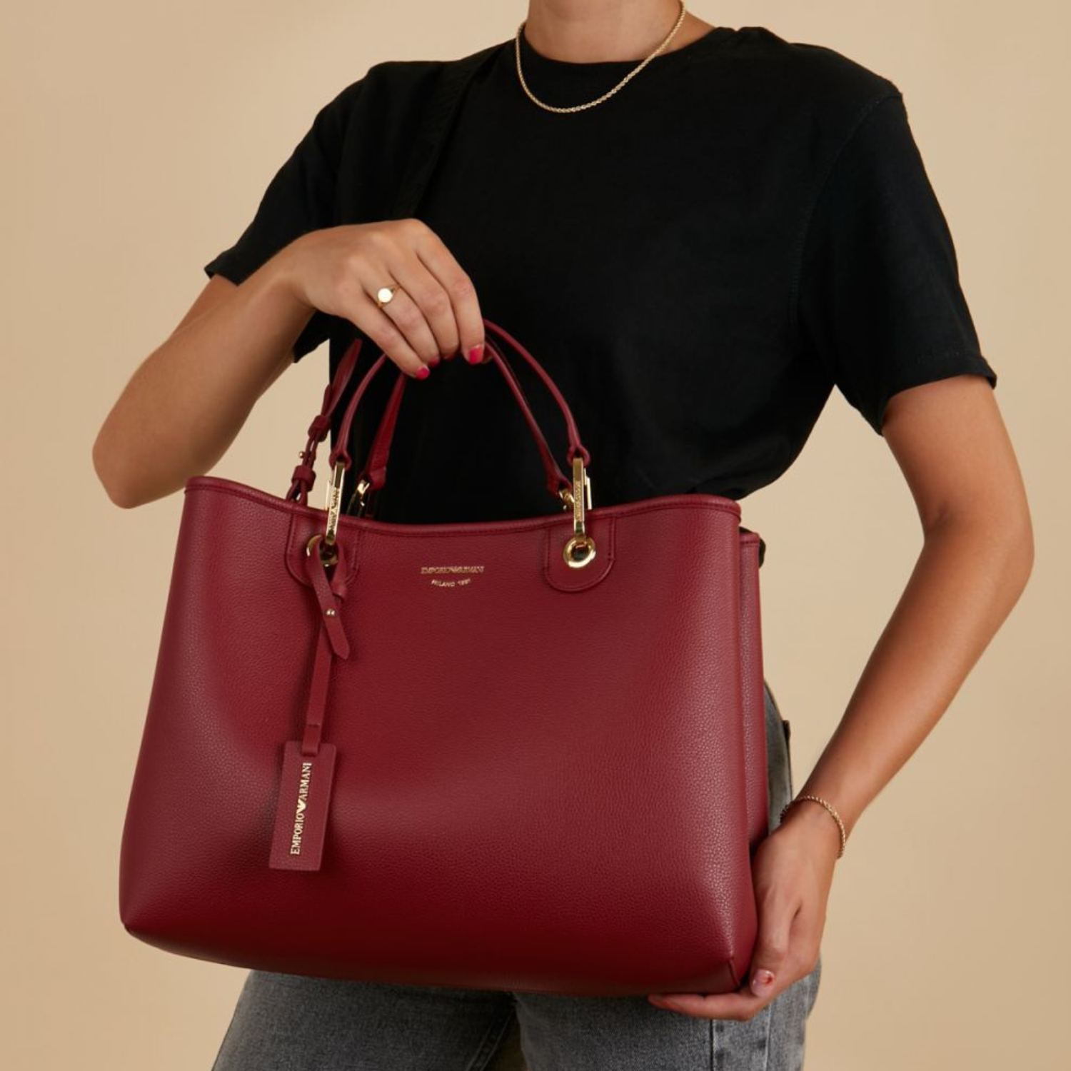 EMPORIO ARMANI LOGO LARGE BURGUNDY TOTE BAG