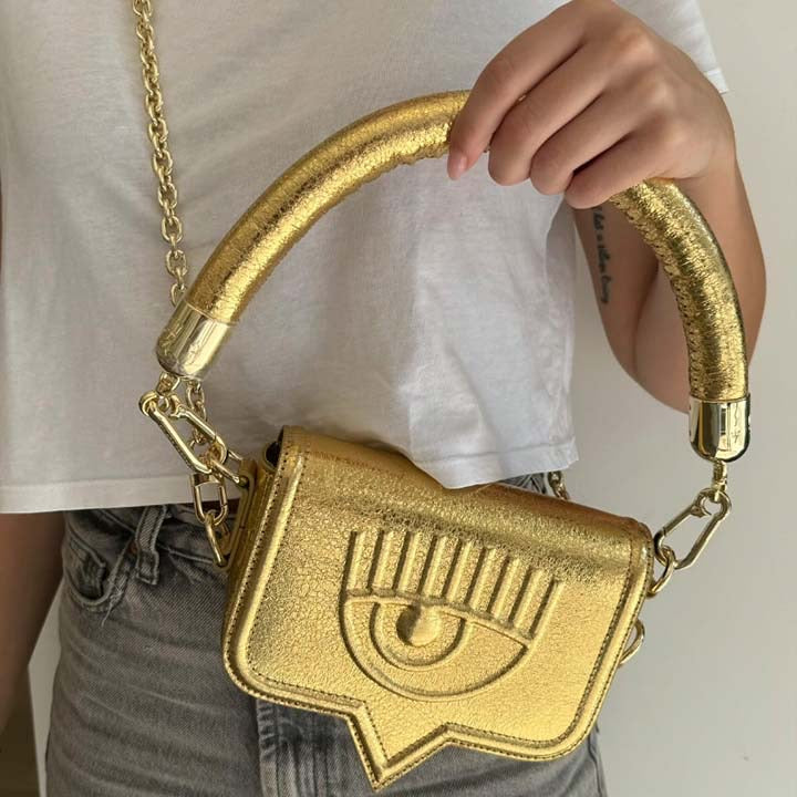 CHIARA FERRAGNI EYELIKE GOLD LEATHER BAG
