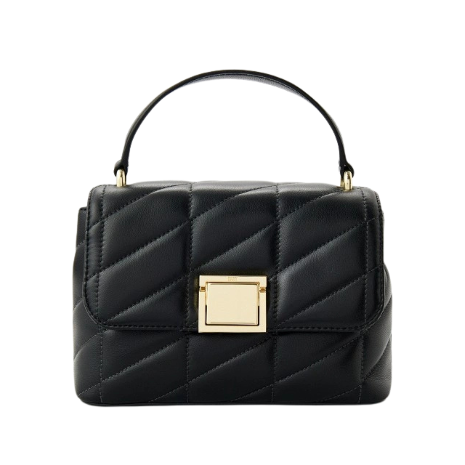 DKNY BLACK LEATHER SMALL GOLD DETAILING SHOULDER BAG