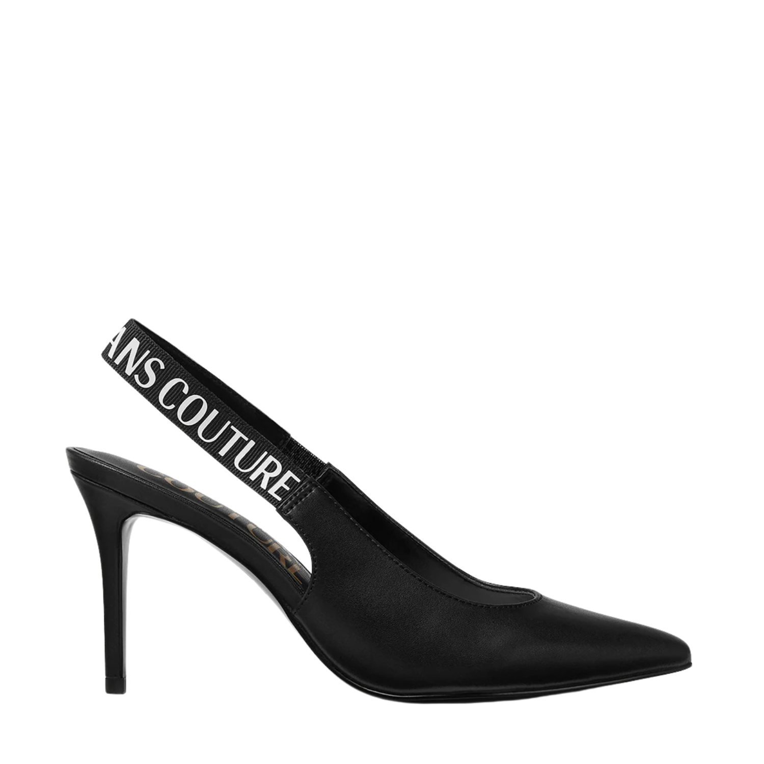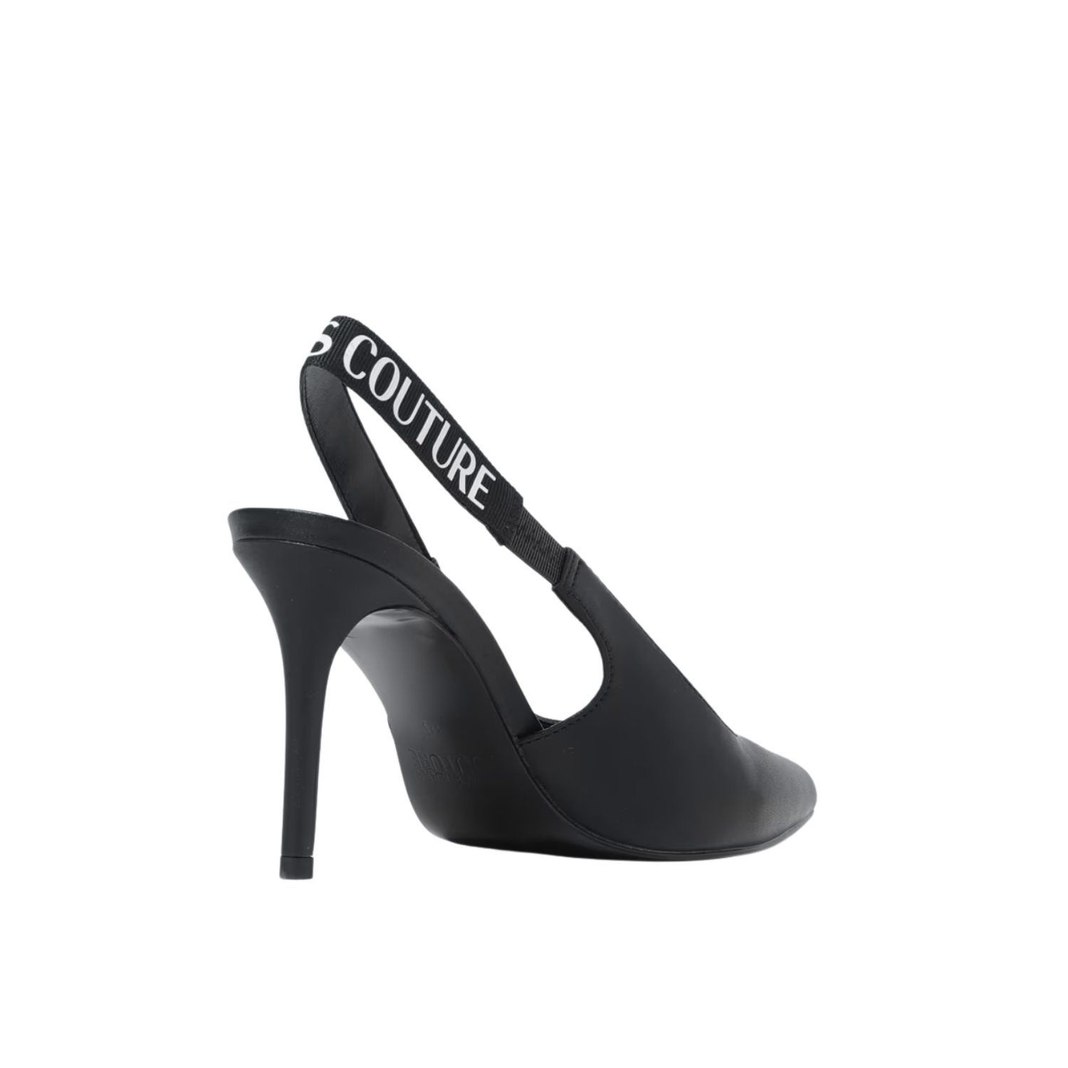Versace Jeans Couture Black Sandals showcase sleek design paired with comfort, featuring a refined silhouette that effortlessly elevates any outfit. Crafted with quality materials, these heels offer stability and style for both day and evening wear, making them a versatile addition to your wardrobe.