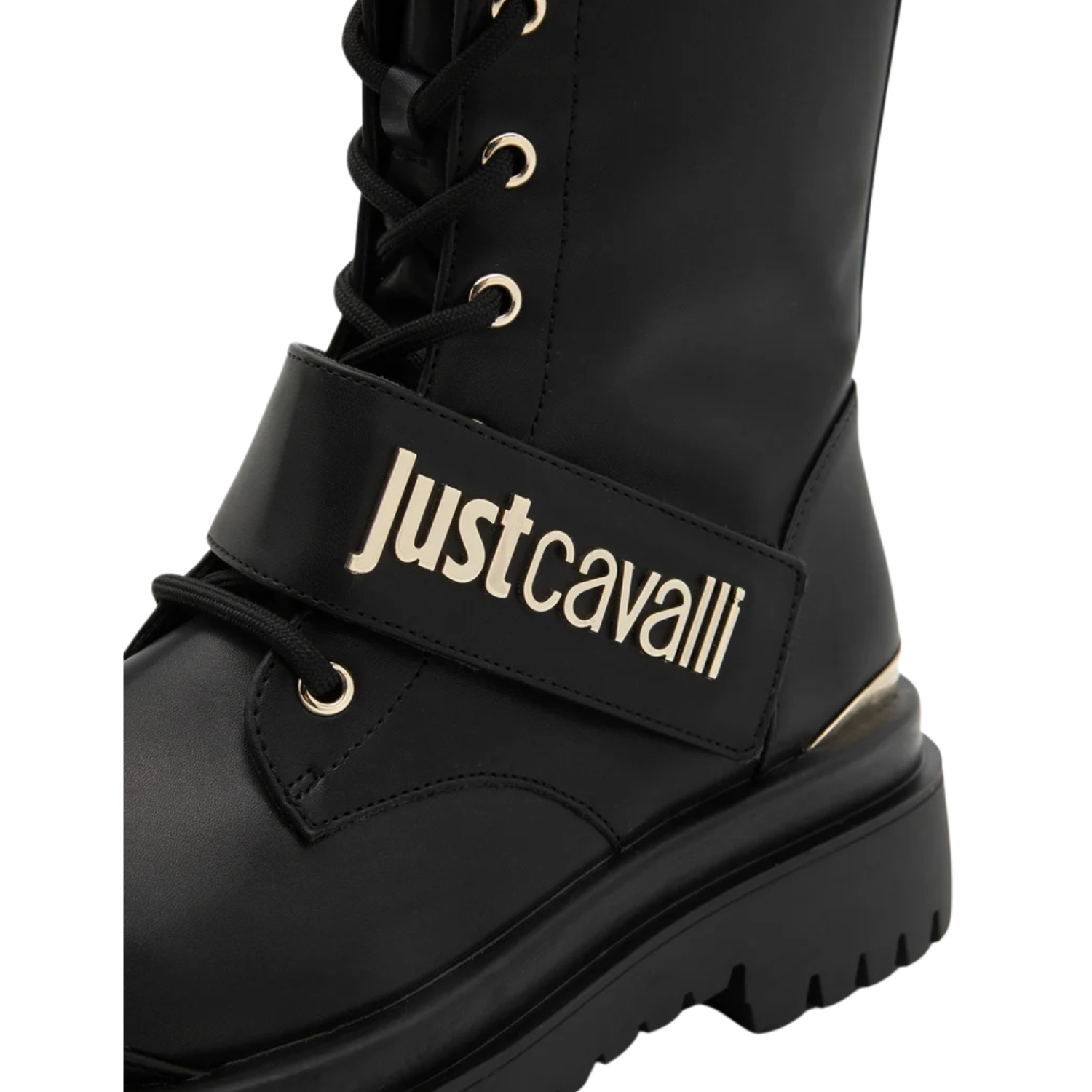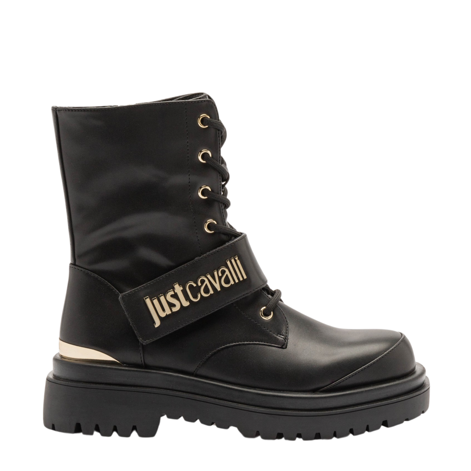 JUST CAVALLI LOGO ANKLE LEATHER BOOTS