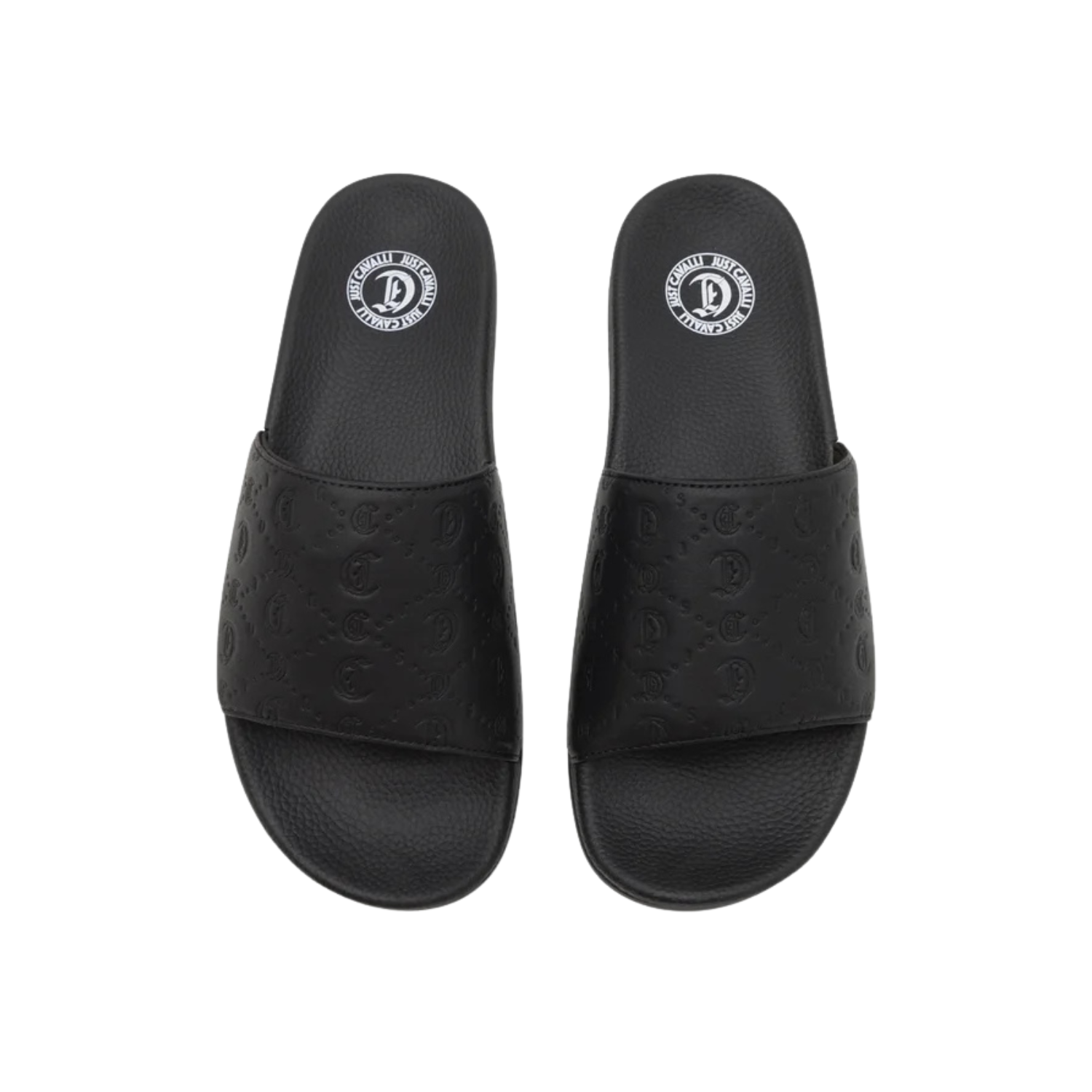 JUST CAVALLI BLACK LOGO LEATHER SLIDES