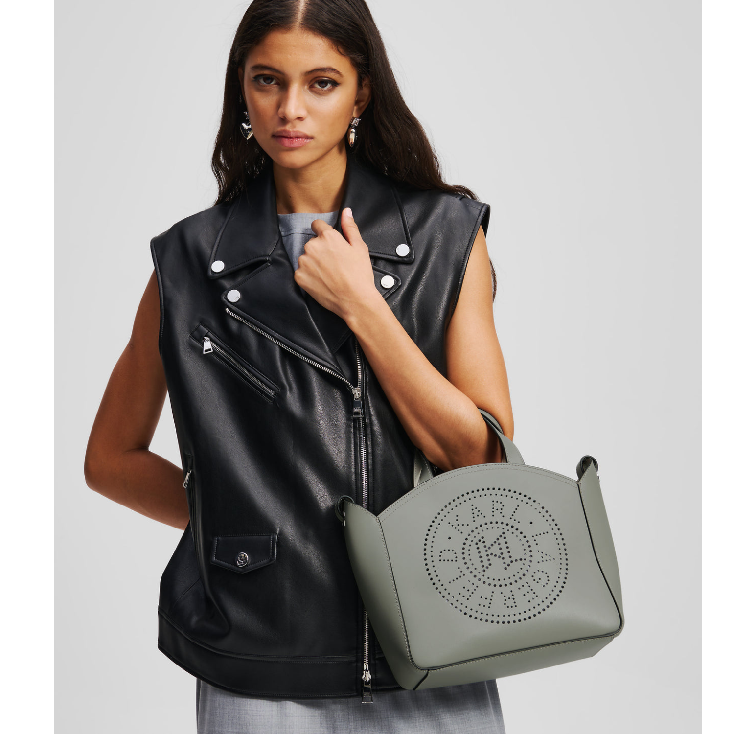 KARL K/CIRCLE PERFORATED GREY TOTE BAG