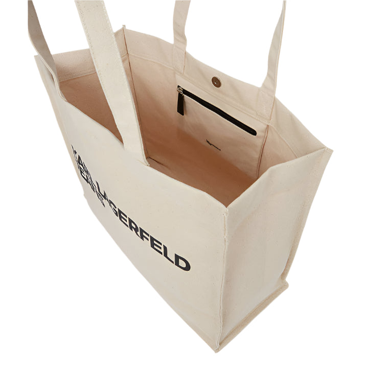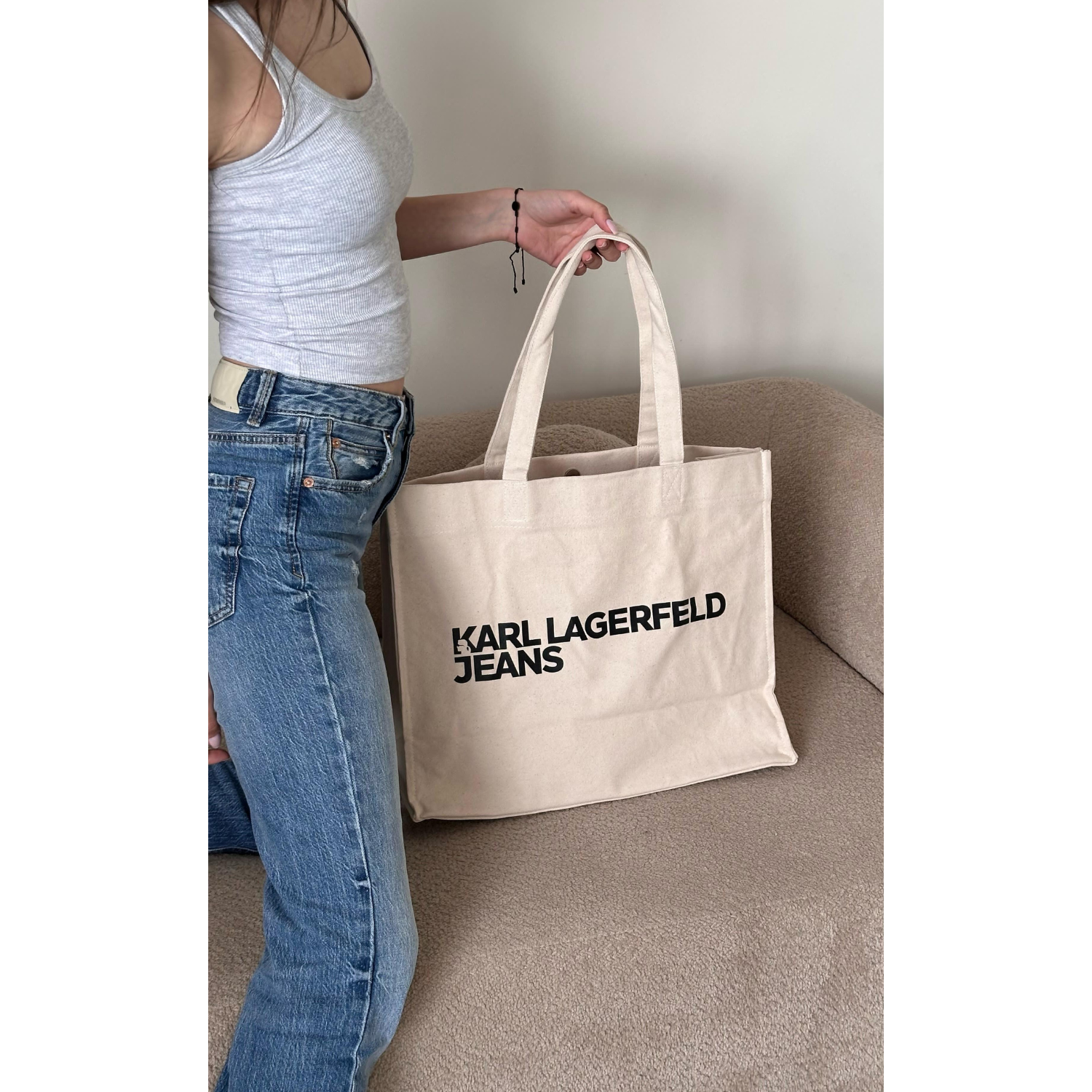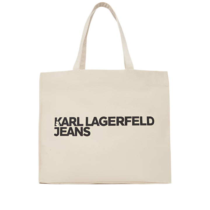KARL LAGERFELD JEANS BEIGE LOGO CANVAS SHOPPER BAG