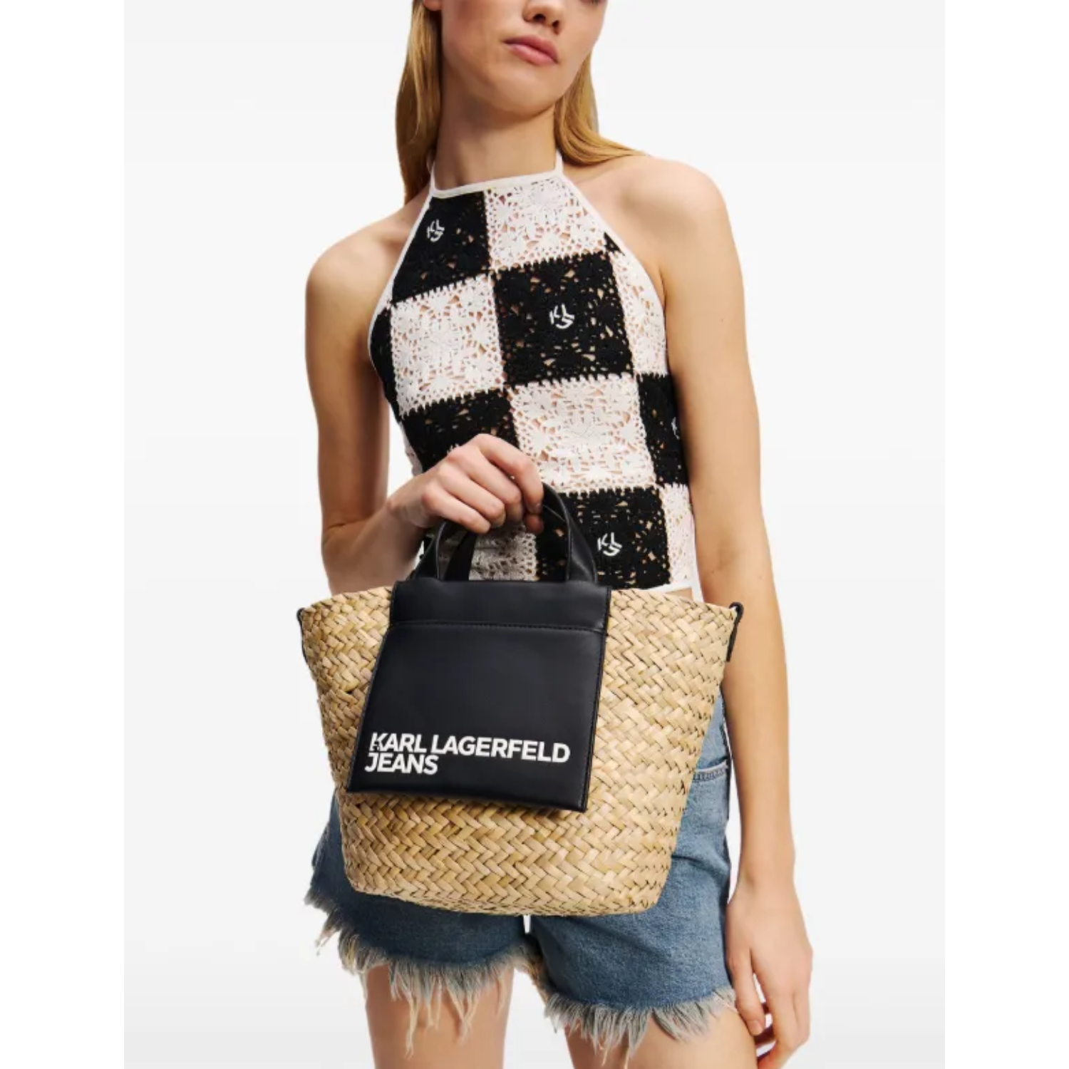 KARL LAGERFELD JEANS SMALL RAFFIA BASKET TOTE BAG