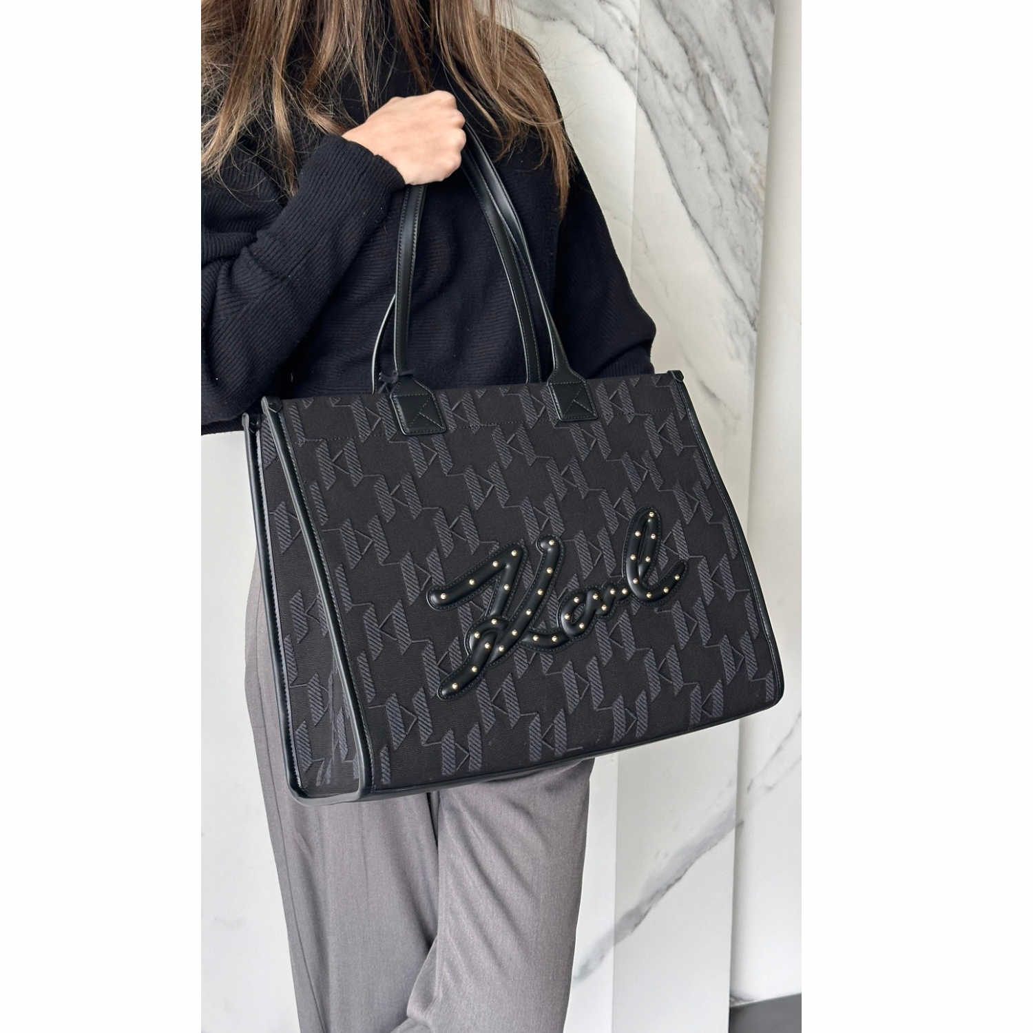 KARL LAGERFELD K/SKUARE WITH MONOGRAM PRINT TOTE BAG