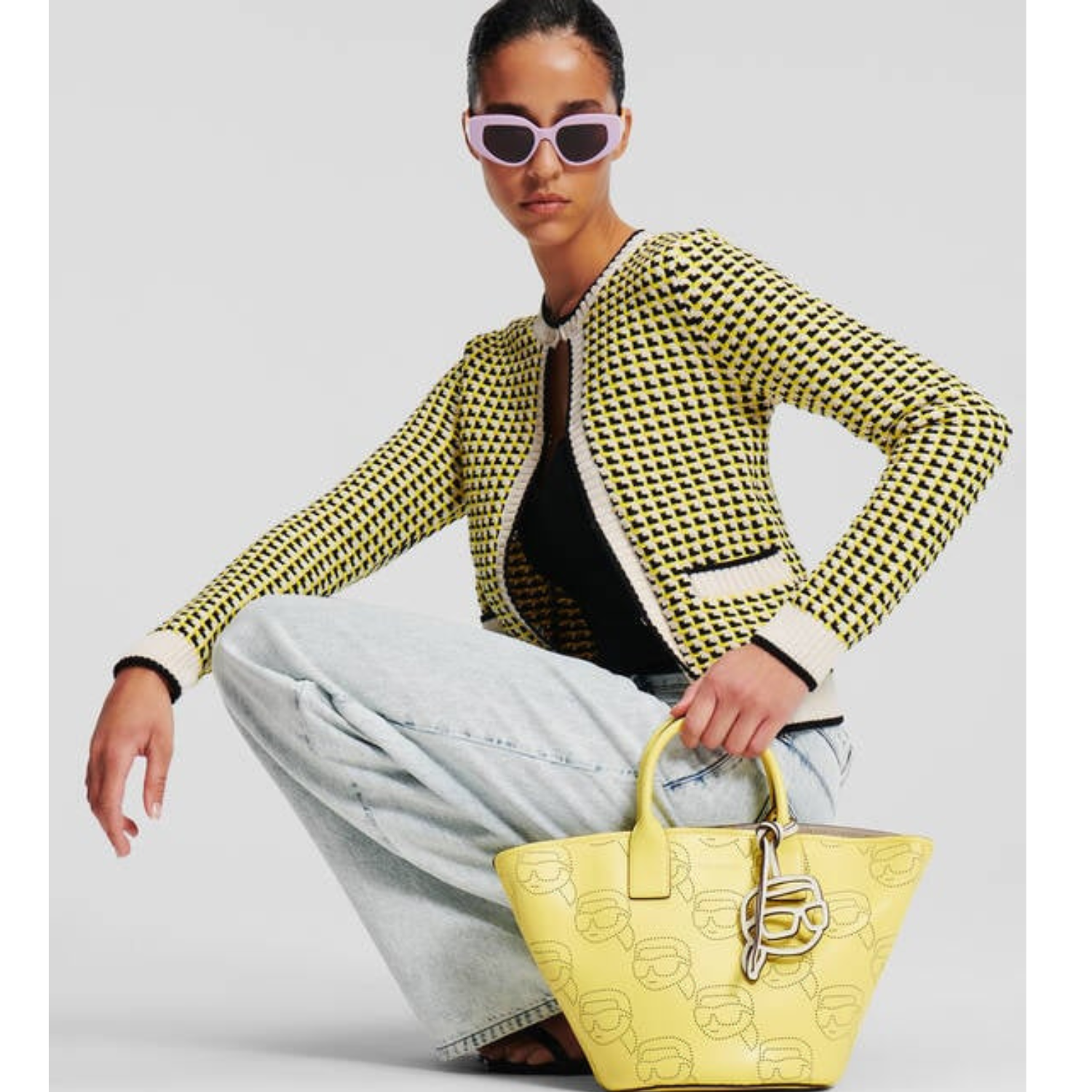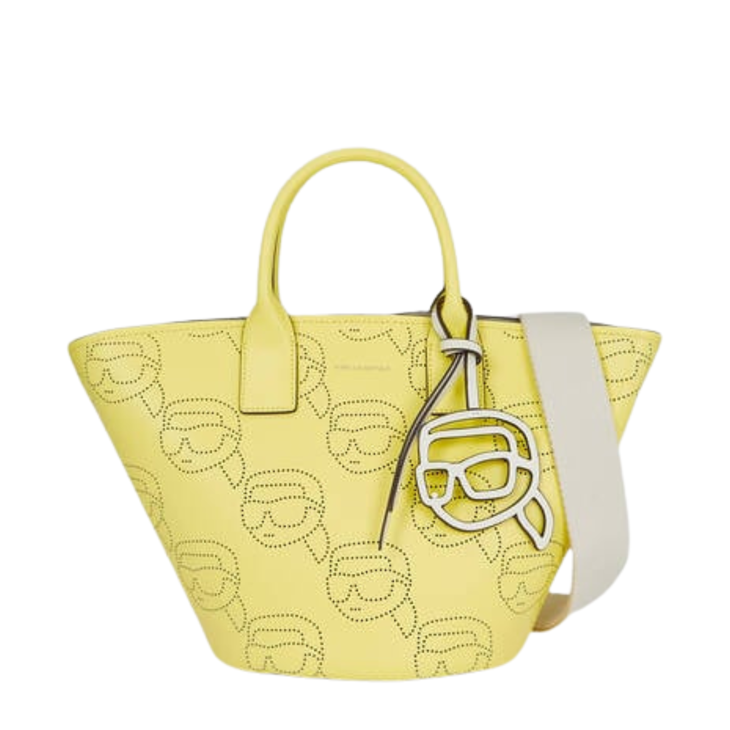 Crafted from sumptuous leather, this K/Ikonik tote bag with polished Ikonik Karl hanging adornment offers a seamless blend of elegance and versatility. Structured handles paired with a detachable crossbody strap provide carrying flexibility, while the inner pouch keeps your essentials secure. An all-over perforated Ikonik Karl design completes this accessory highlight with playful charm.