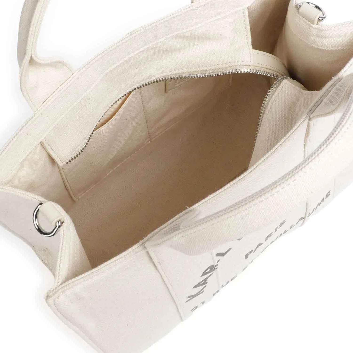 Expertly crafted by KARL LAGERFELD, the ST-GUILLAUME SQUARE MEDIUM TOTE BAG is a versatile and stylish addition to any wardrobe. Made of durable beige canvas, it's the perfect size for everyday use. With its square shape and luxurious design, this tote bag is both functional and fashionable.