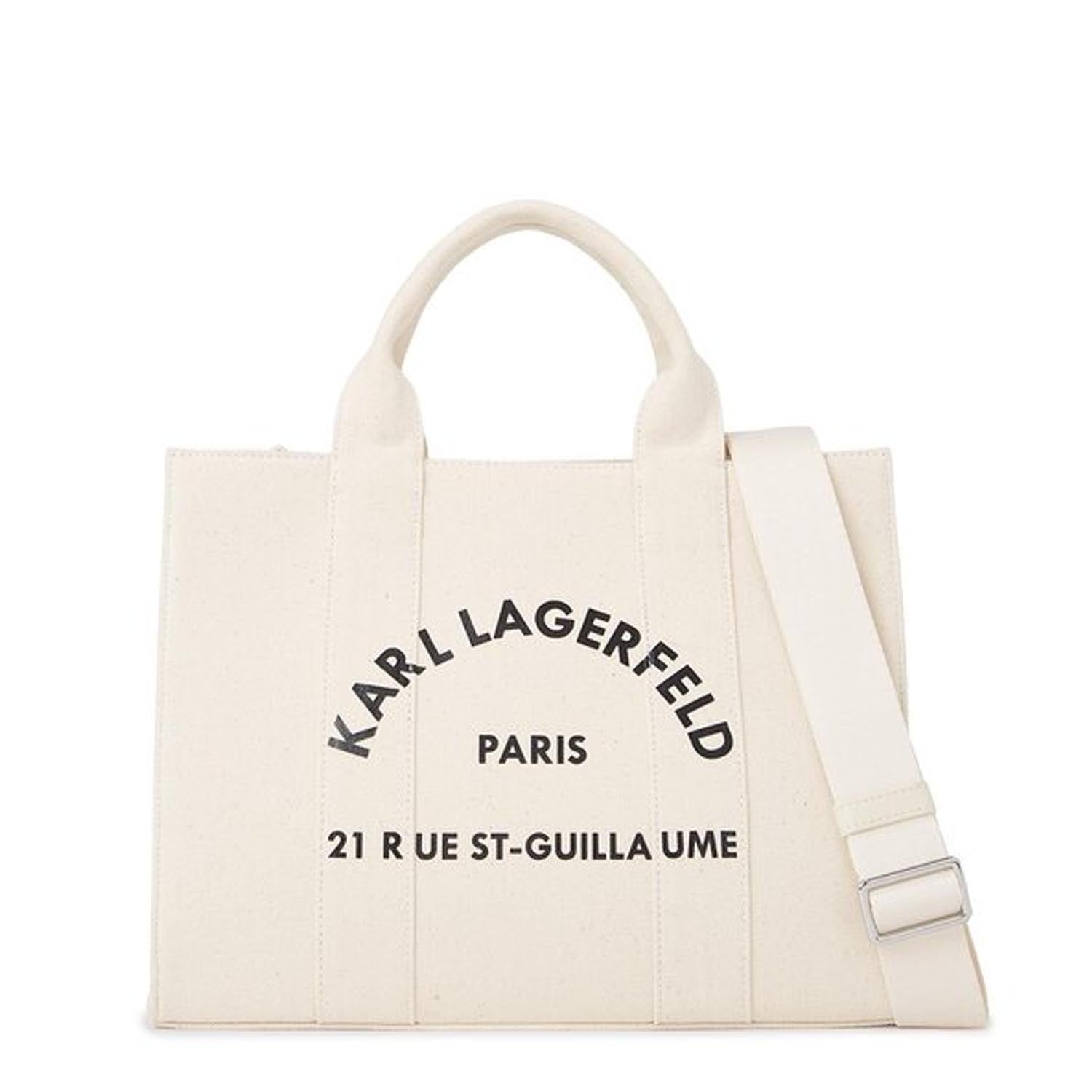 Expertly crafted by KARL, the ST-GUILLAUME SQUARE MEDIUM TOTE BAG is a versatile and stylish addition to any wardrobe. Made of durable beige canvas, it's the perfect size for everyday use. With its square shape and luxurious design, this tote bag is both functional and fashionable.