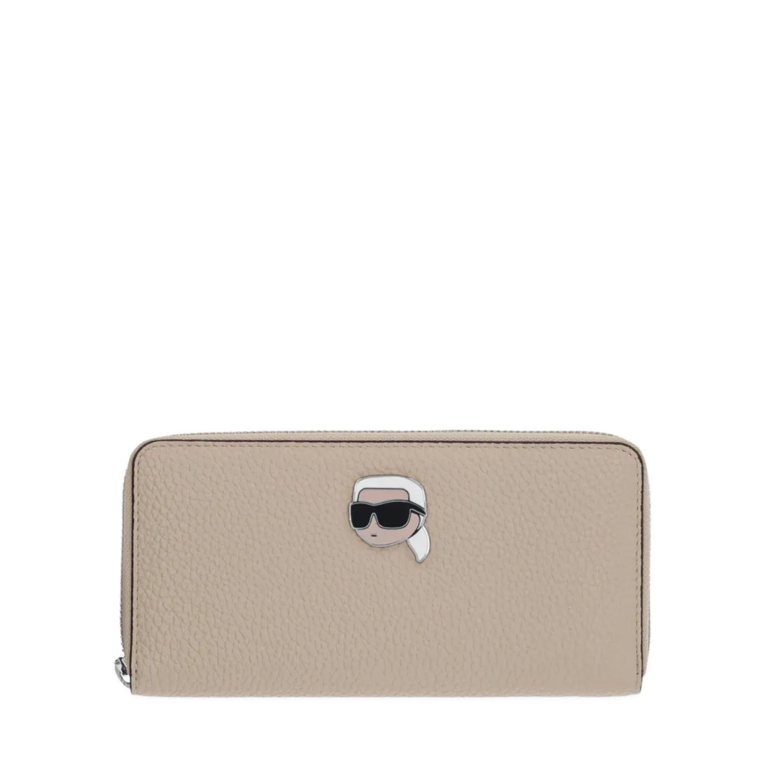 Crafted from smooth leather, the K/Kircle wallet by Karl Lagerfeld is a sleek essential with a signature touch. Its compact silhouette opens to reveal multiple card slots and a zipped coin pocket, ensuring effortless organisation. Finished with the brand’s iconic perforated logo plaque, it’s a refined everyday companion