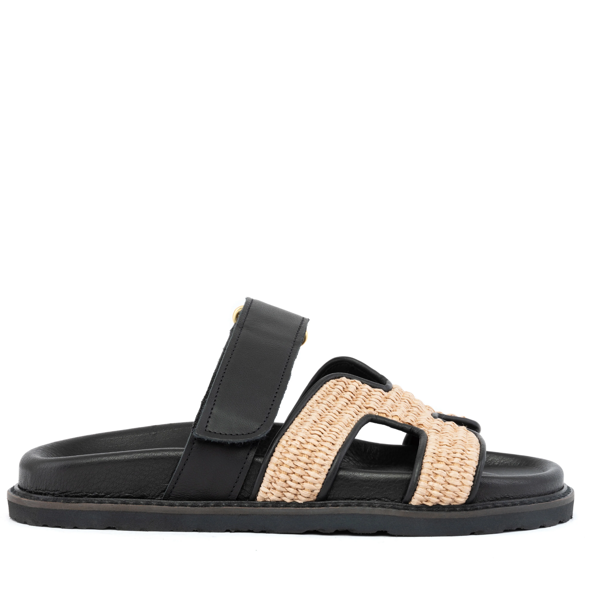 Anatomical flats with leather sole. Material leather & natural straw. Height 2cm