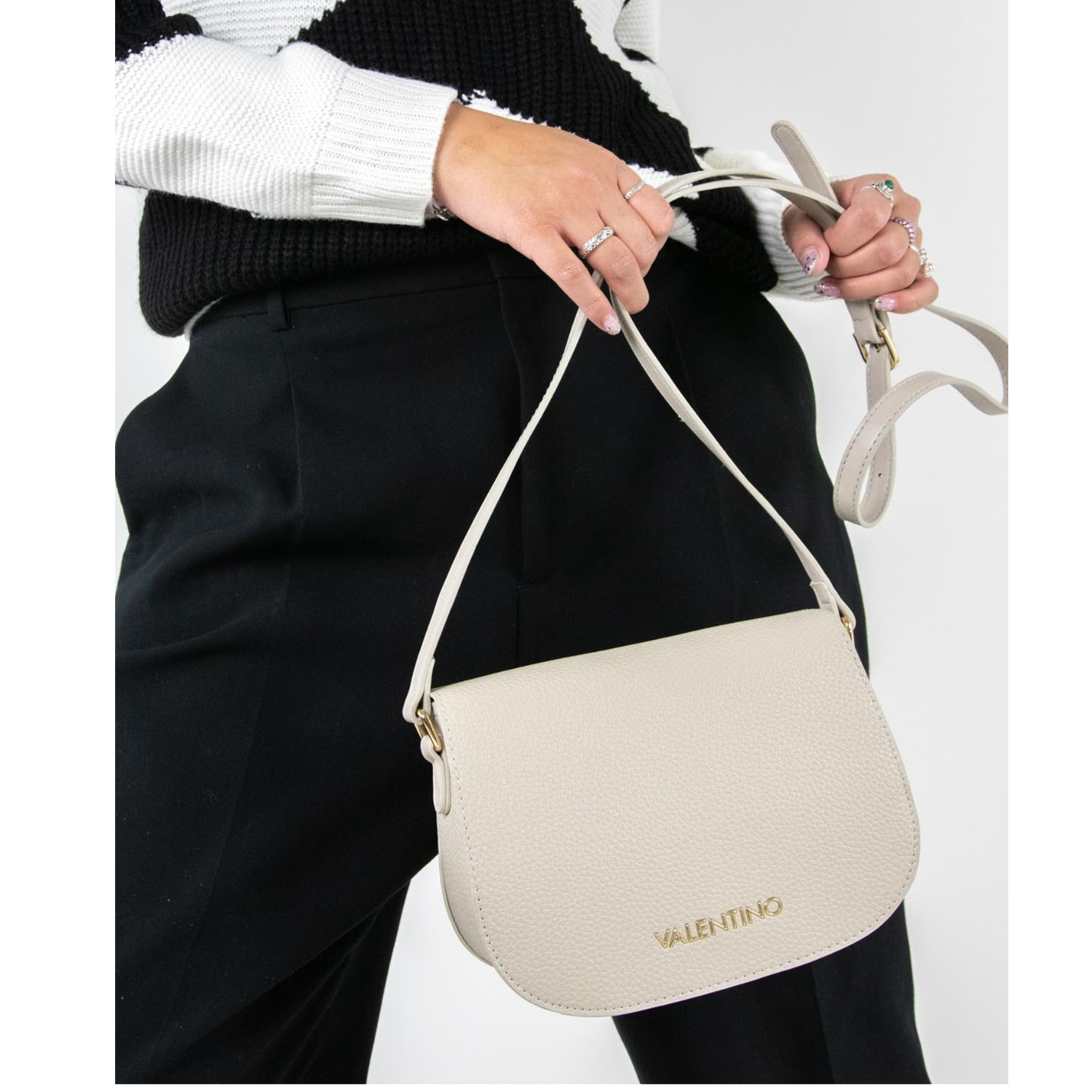 Shoulder bag from the Valentino Bags line, made of eco-leather. Inside it has an open pocket and a zipped pocket that optimize space. It features an adjustable and removable eco-leather shoulder strap that allows for customization. Finally, it is enriched by a front logo in relief and a hammered effect texture.