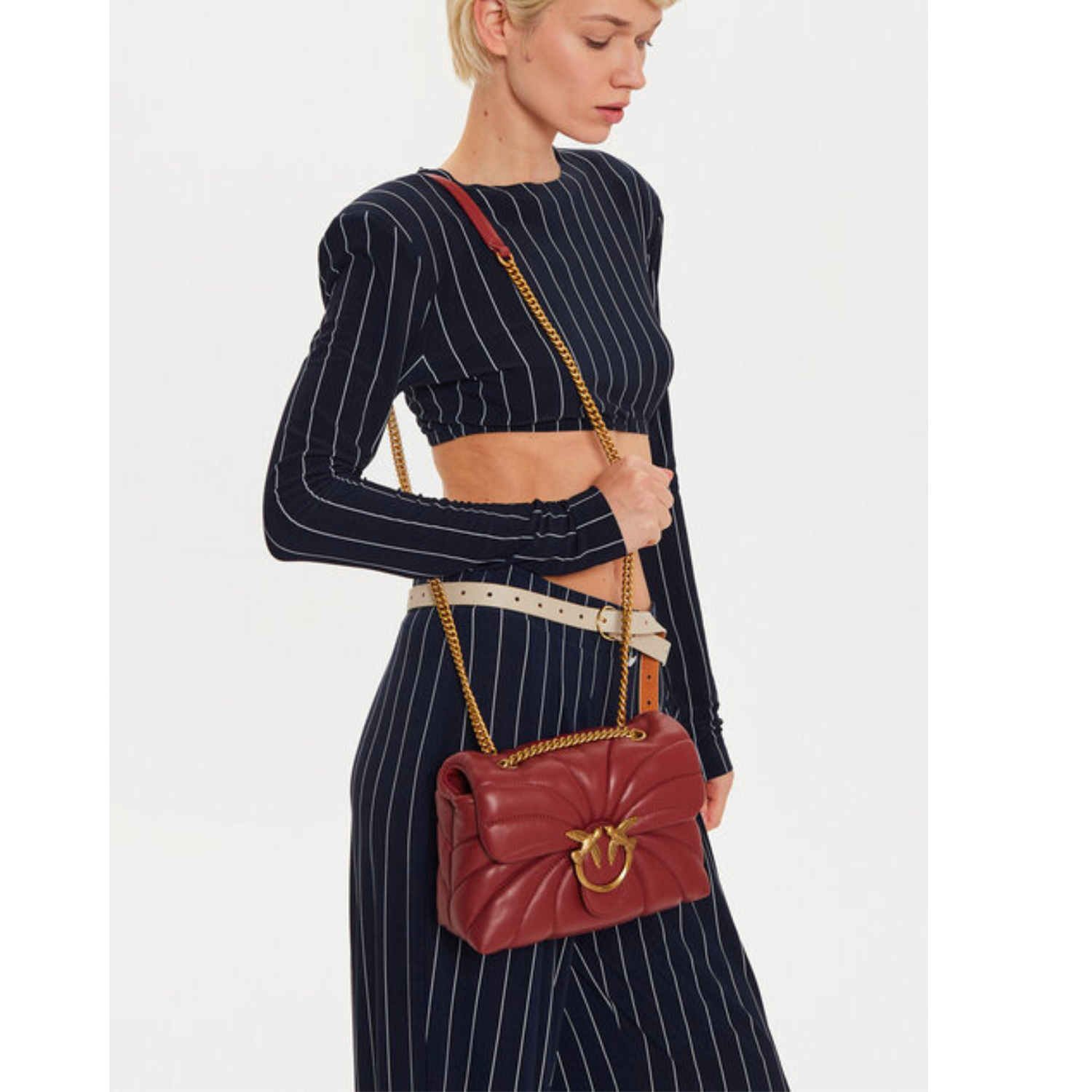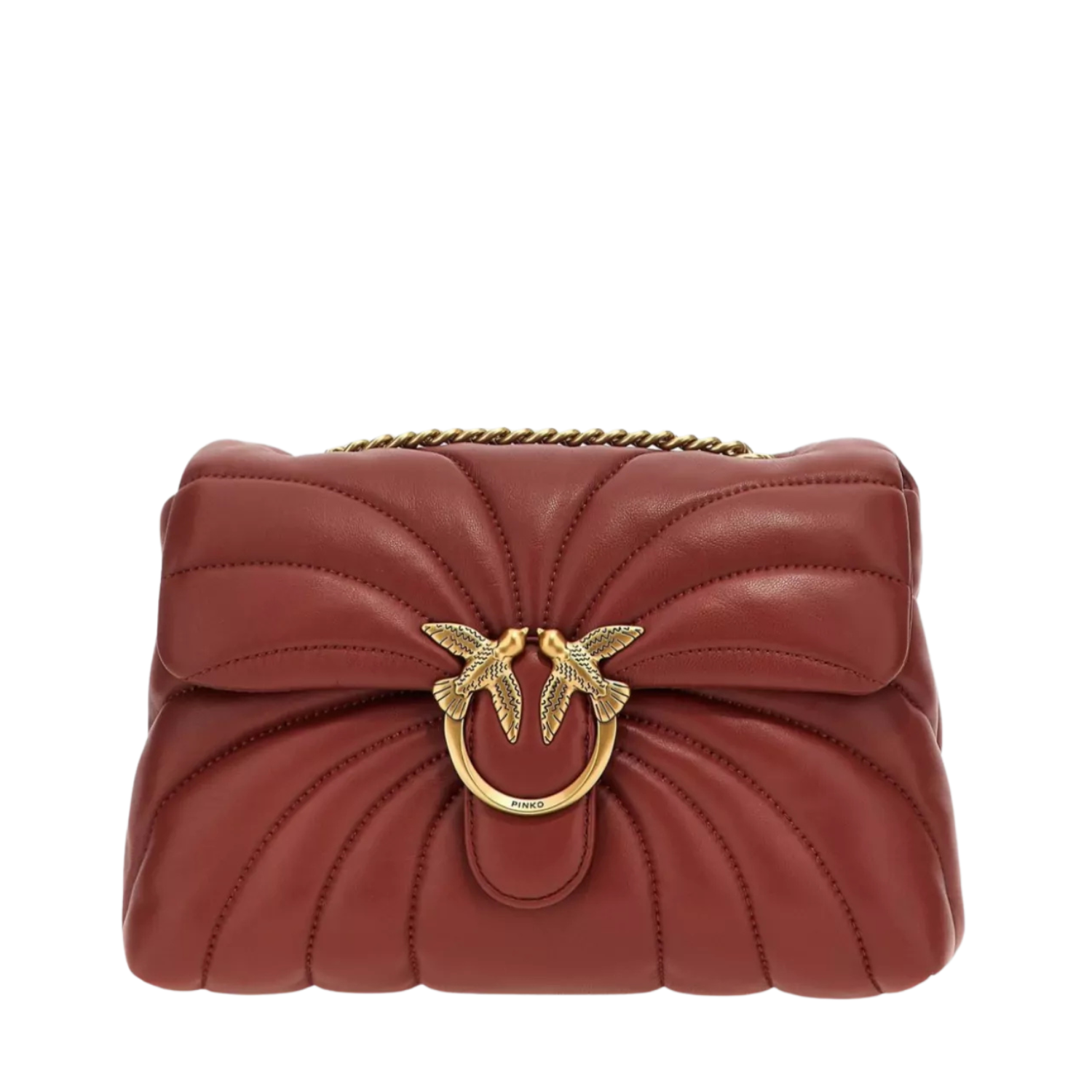 PINKO's shoulder bag is decorated with the signature romantic Love Birds plaque on the front.