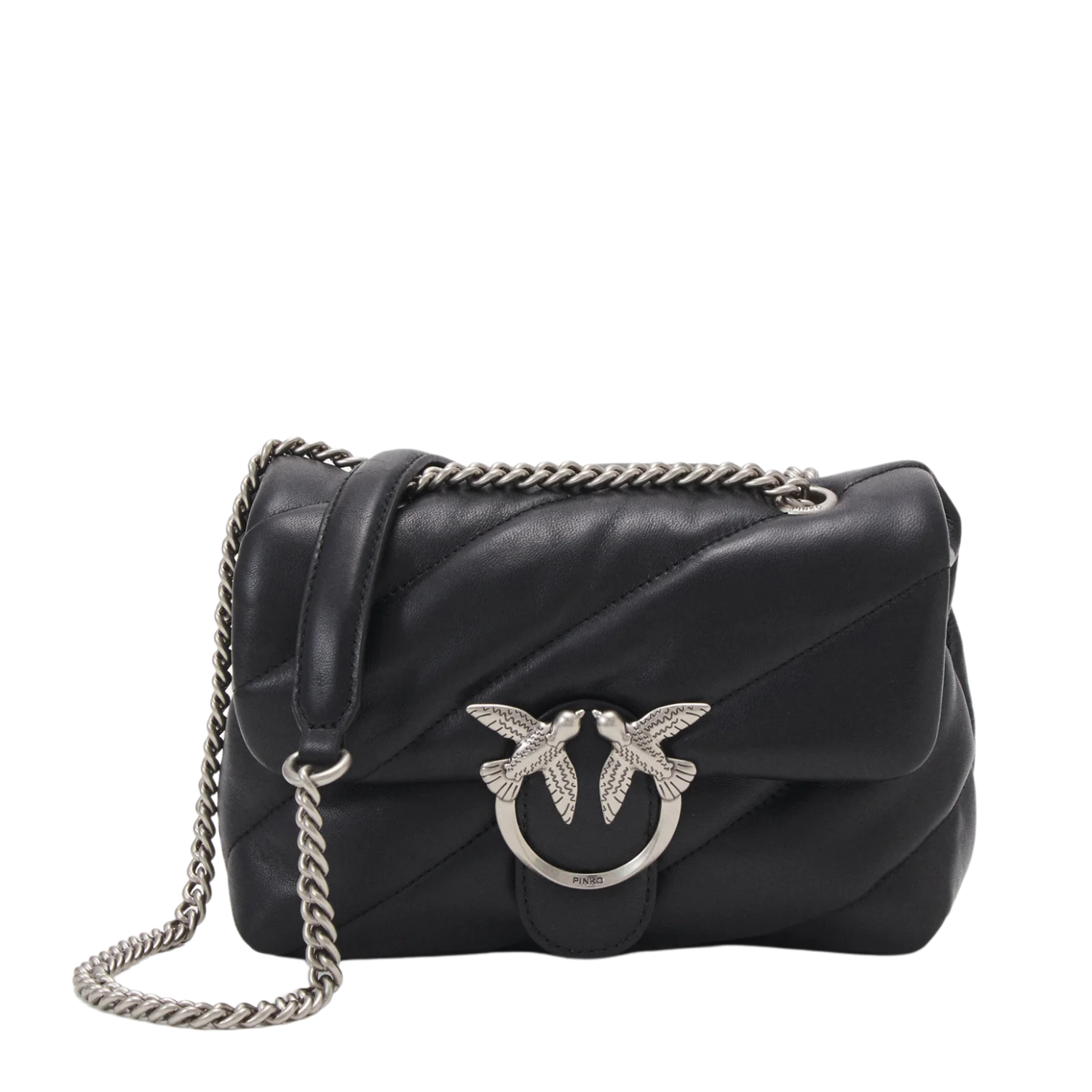 The signature Love Birds buckle on the front of PINKO's Love Classic Puff shoulder bag gives the accessory its iconic name. The logo's unique design represents 'love and freedom, power and light', which characterises the label's aesthetic.
