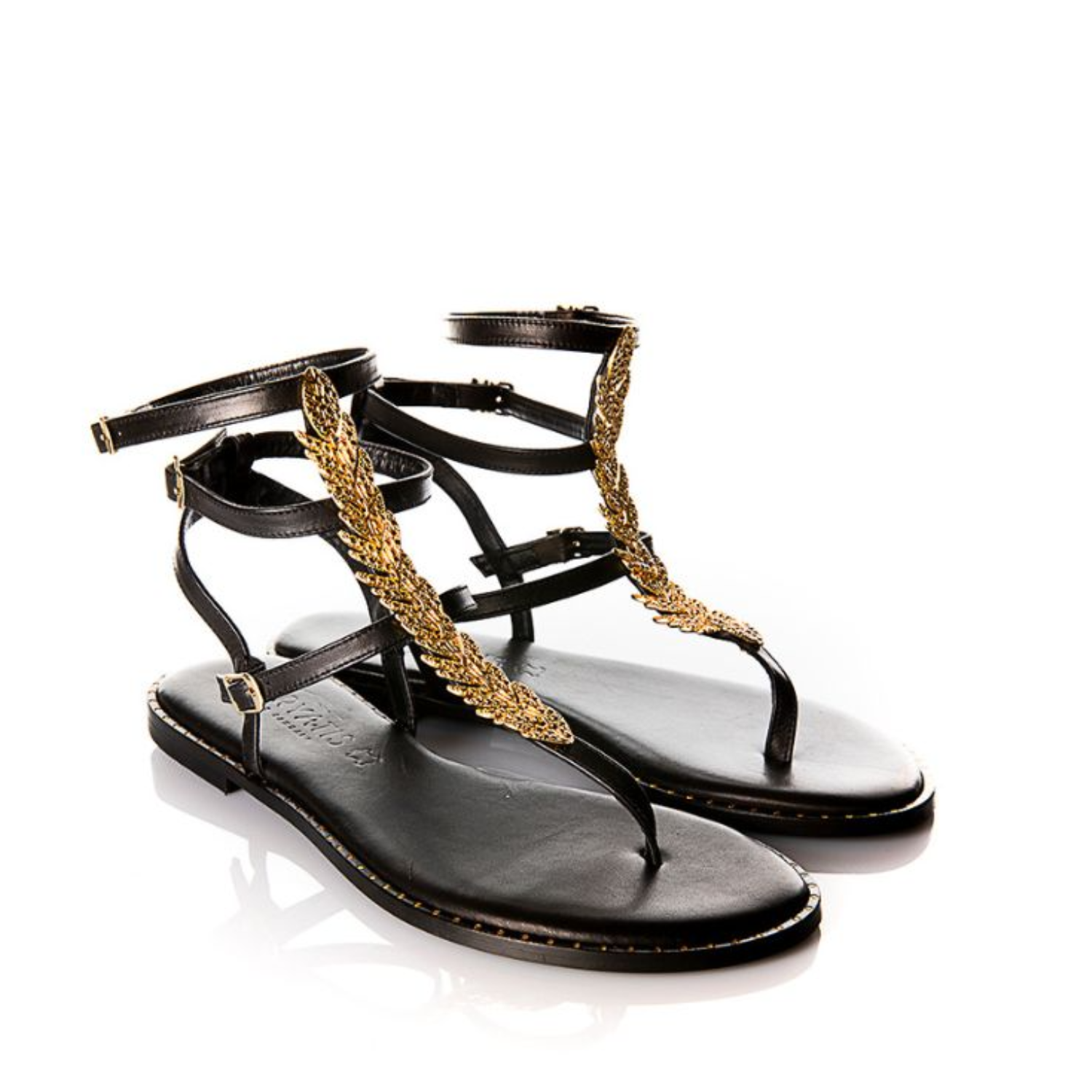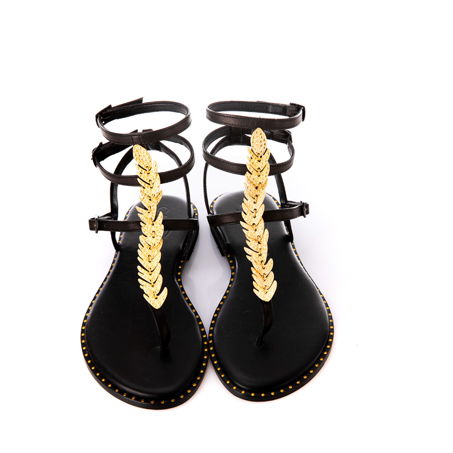 CARYATIS GOLD DETAILS BLACK SANDALS