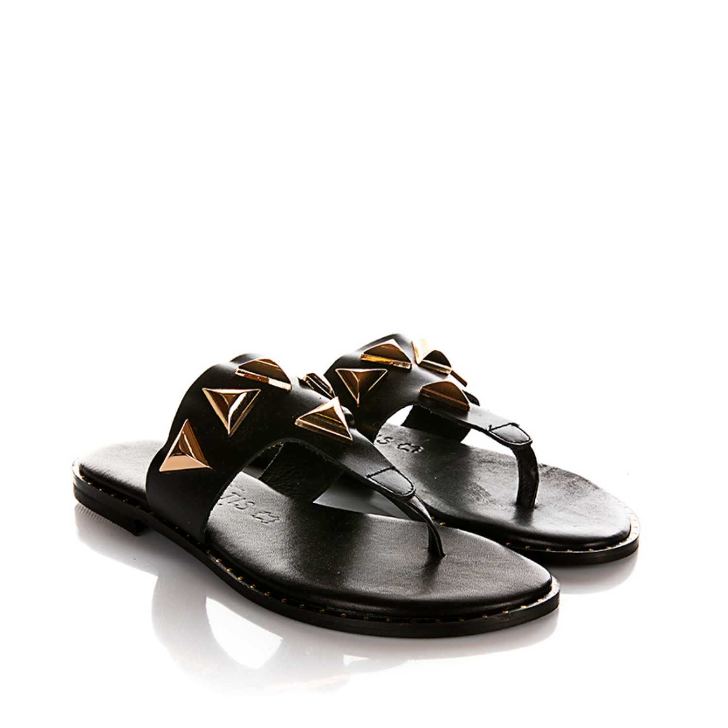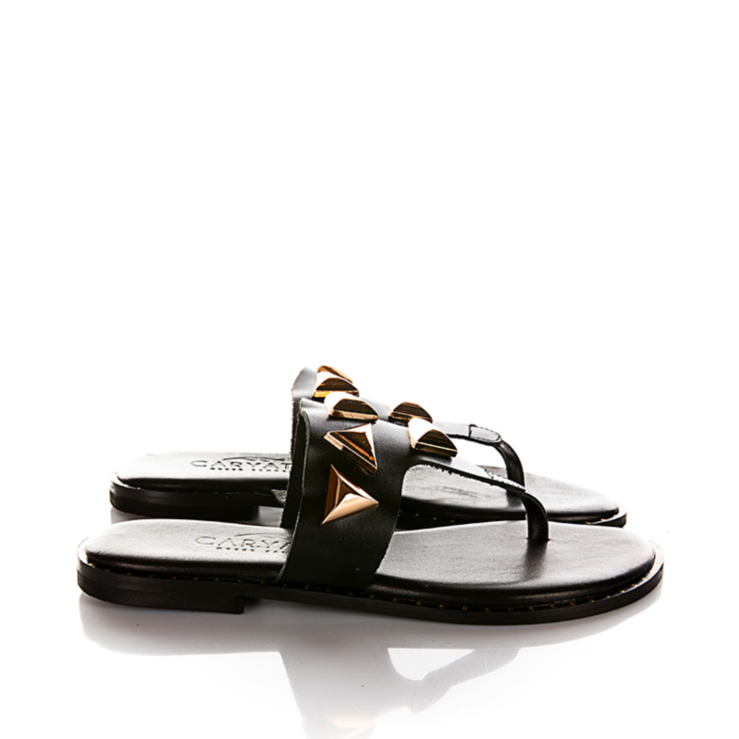 CARYATIS STUDDED BLACK LEATHER SANDALS