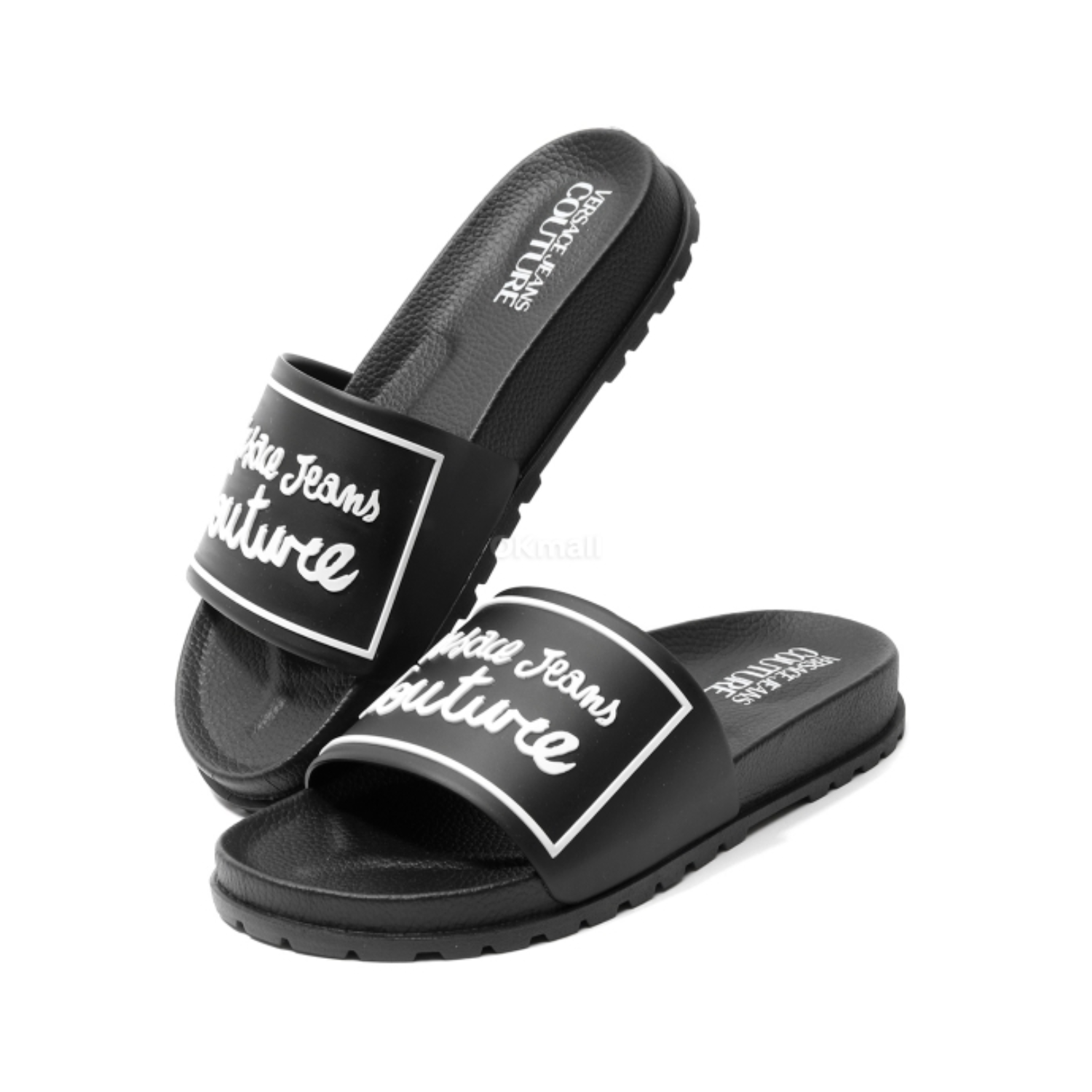 VERSACE JEANS COUTURE BLACK LOGO SLIDES