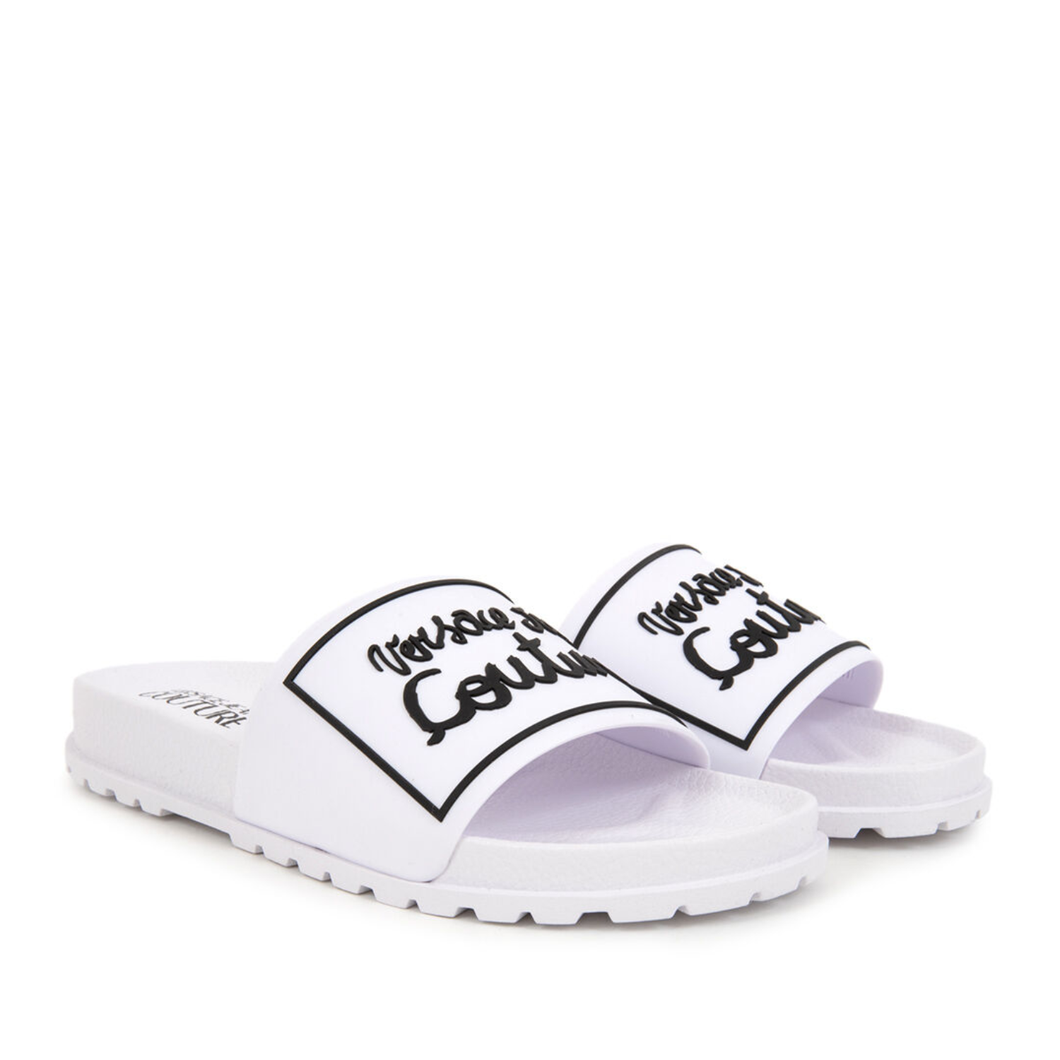 VERSACE JEANS COUTURE WHITE LOGO SLIDES
