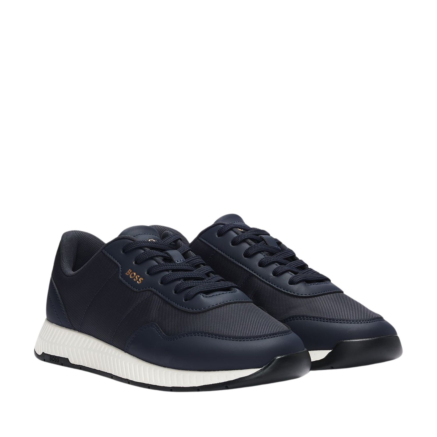 Hybrid trainers with printed logos by BOSS, crafted in a combination of leather and textured fabric.