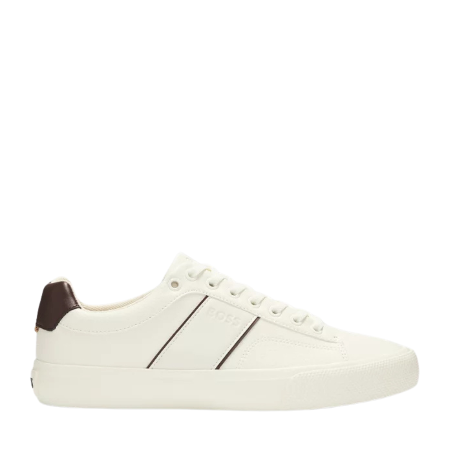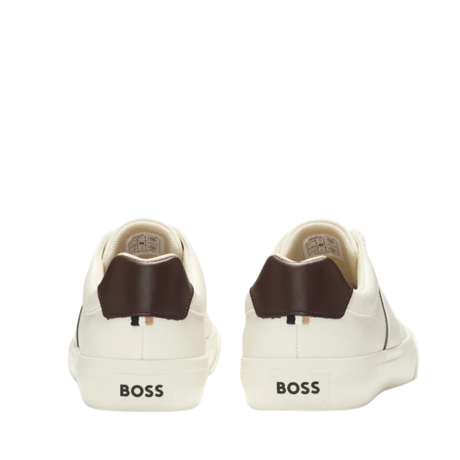 Hybrid trainers with printed logos by BOSS, crafted in a combination of white & brown leather.