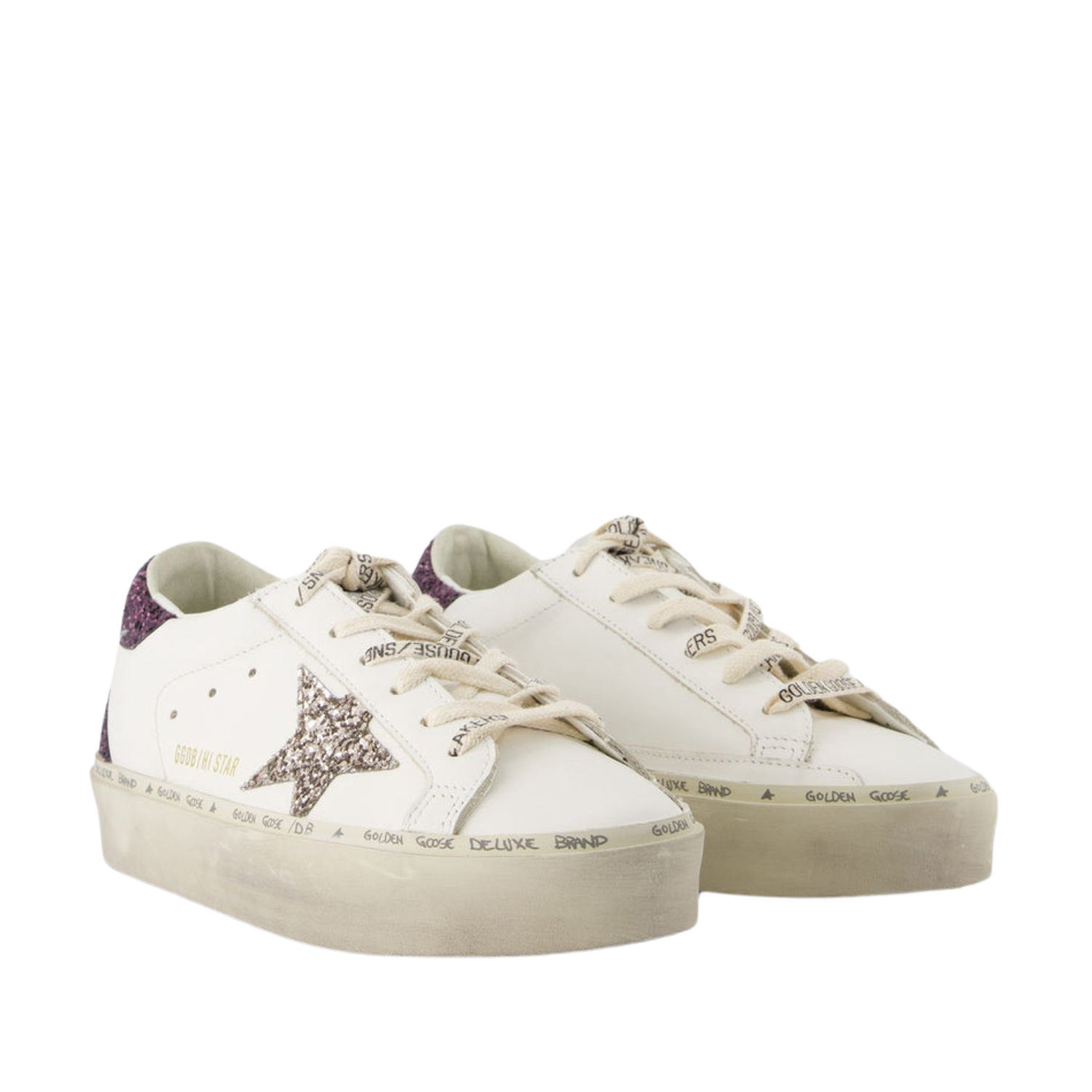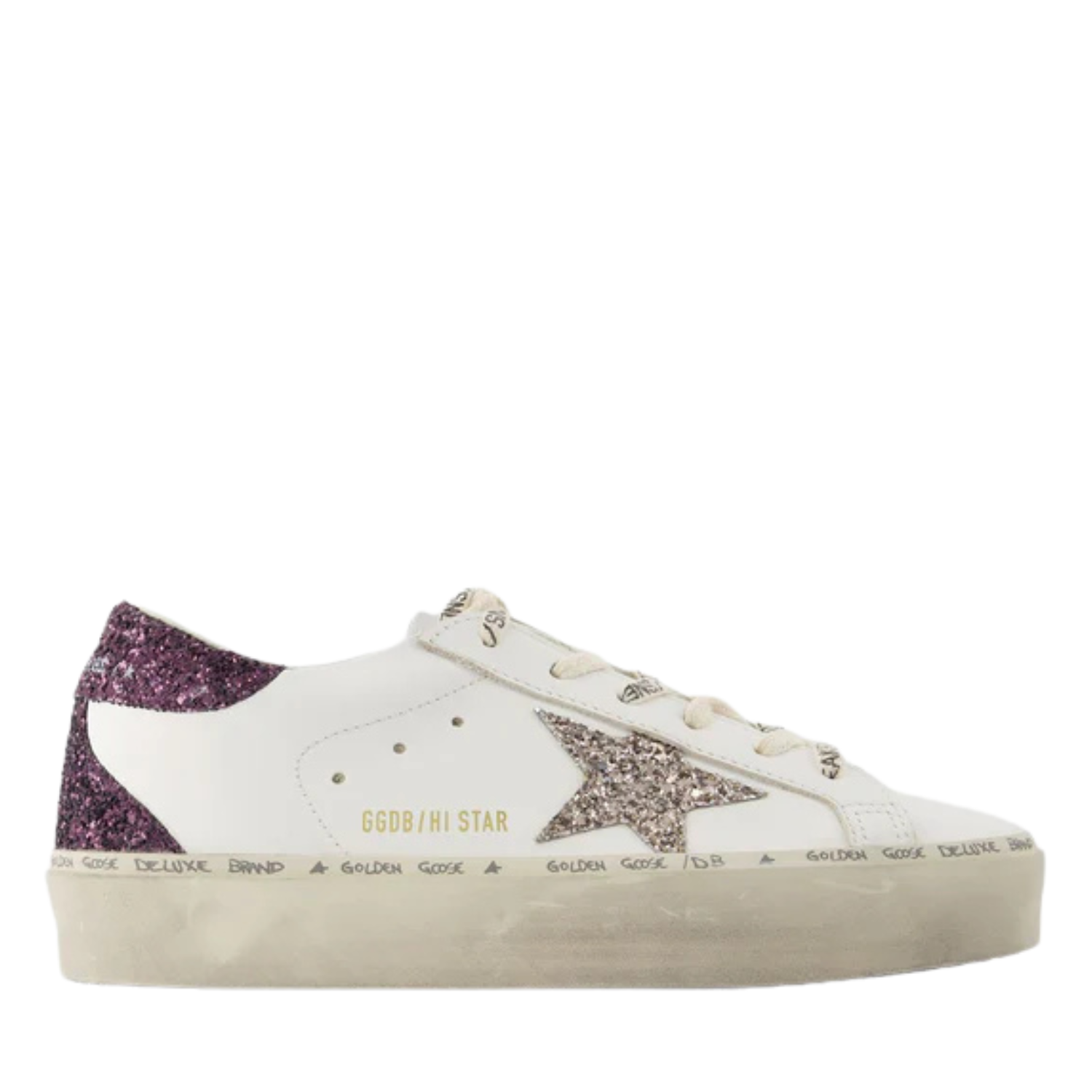 GOLDEN GOOSE HI-STAR GLITTER LEATHER SNEAKERS