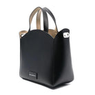 K/Circle perforated tote bag from KARL featuring black , leather, perforated logo detail, scallop edge, logo shoulder strap and two top handles