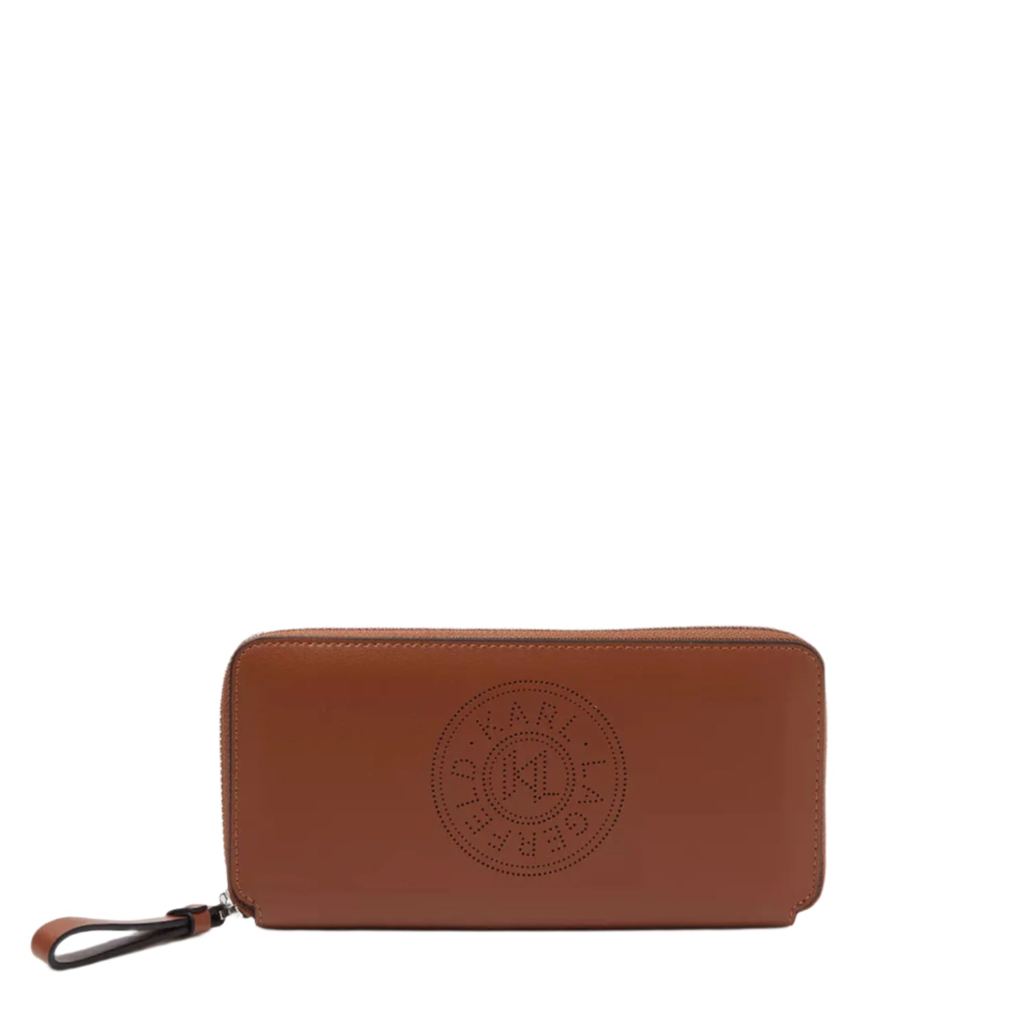 Crafted from smooth leather, the K/Kircle wallet by Karl Lagerfeld is a sleek essential with a signature touch. Its compact silhouette opens to reveal multiple card slots and a zipped coin pocket, ensuring effortless organisation. Finished with the brand’s iconic perforated logo plaque, it’s a refined everyday companion