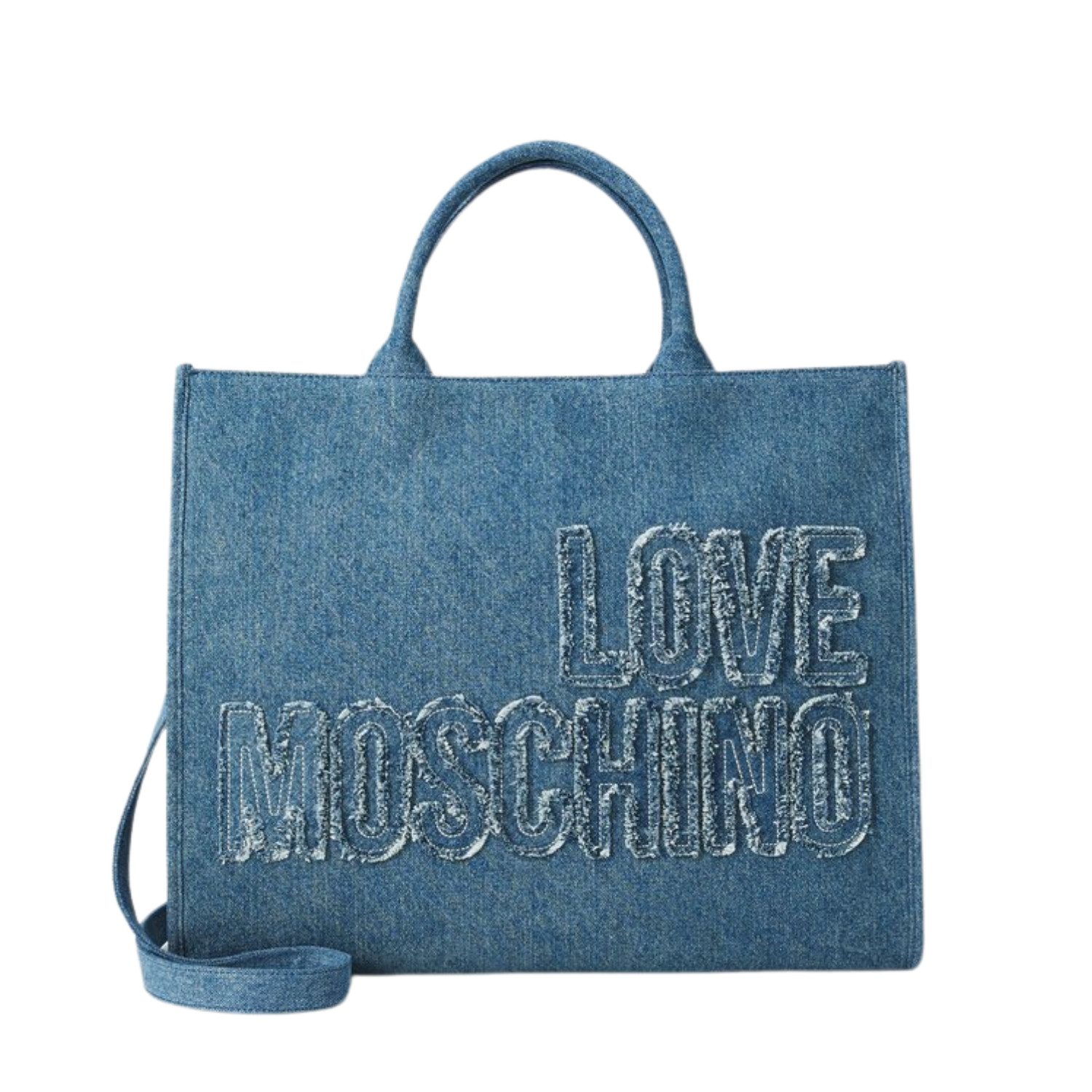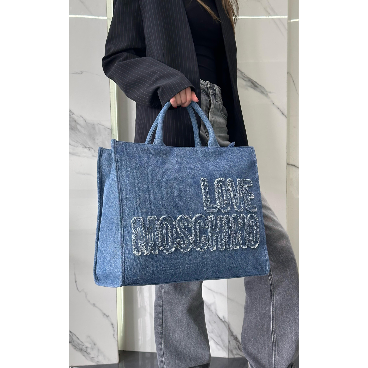 LOVE MOSCHINO DENIM LOGO LARGE TOTE BAG