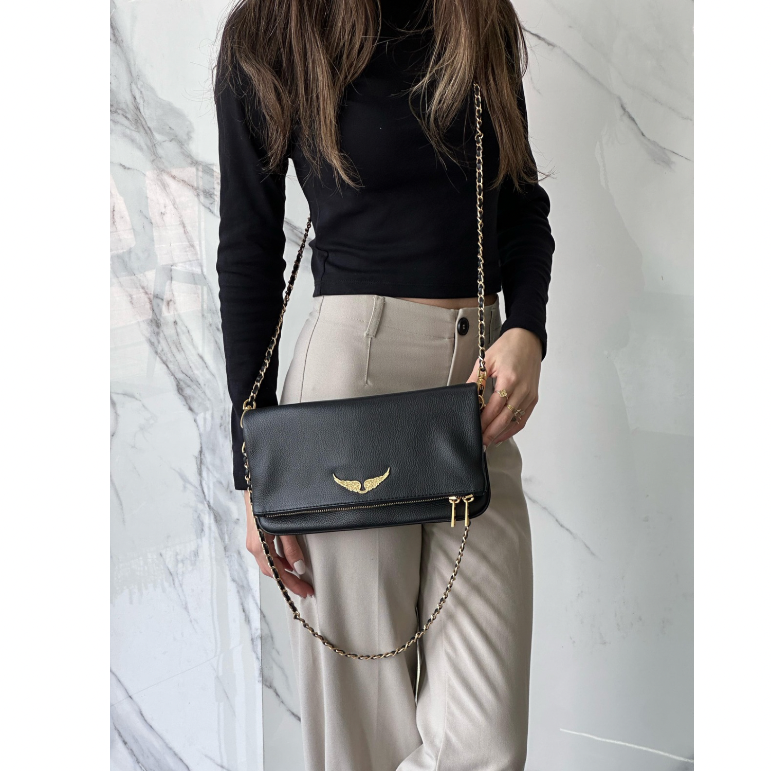 ZADIG & VOLTAIRE ROCK NOIR GOLD BAG