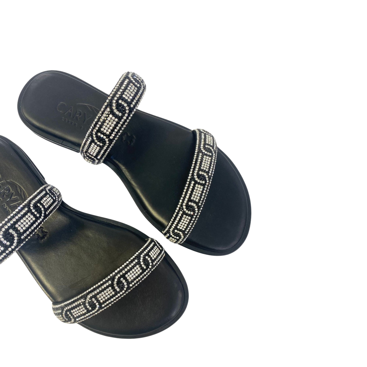 CARYATIS RHINESTONES BLACK SANDALS