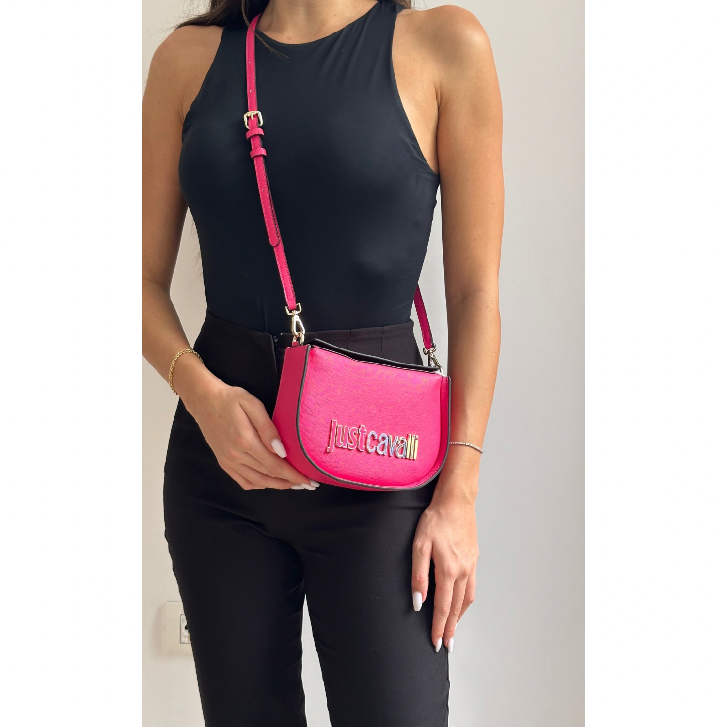 JUST CAVALLI LOGO-PLAQUE PINK SHOULDER BAG