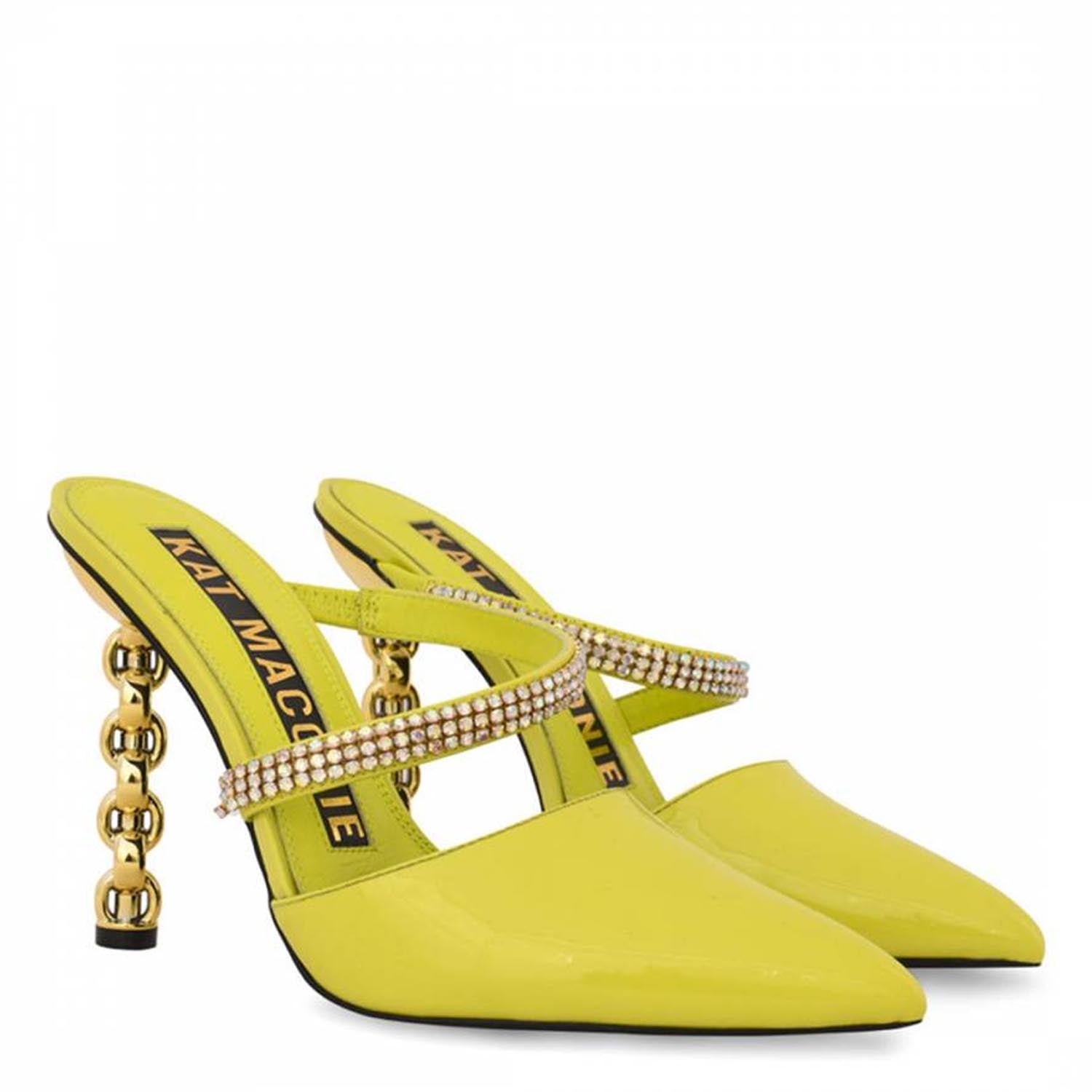 - The heeled mule that calls you to the dance floor, Maddy brings the energy. This pointed toe style is crafted from lime punch leather, with a crystal strap for added glamour and our new chiletto heel