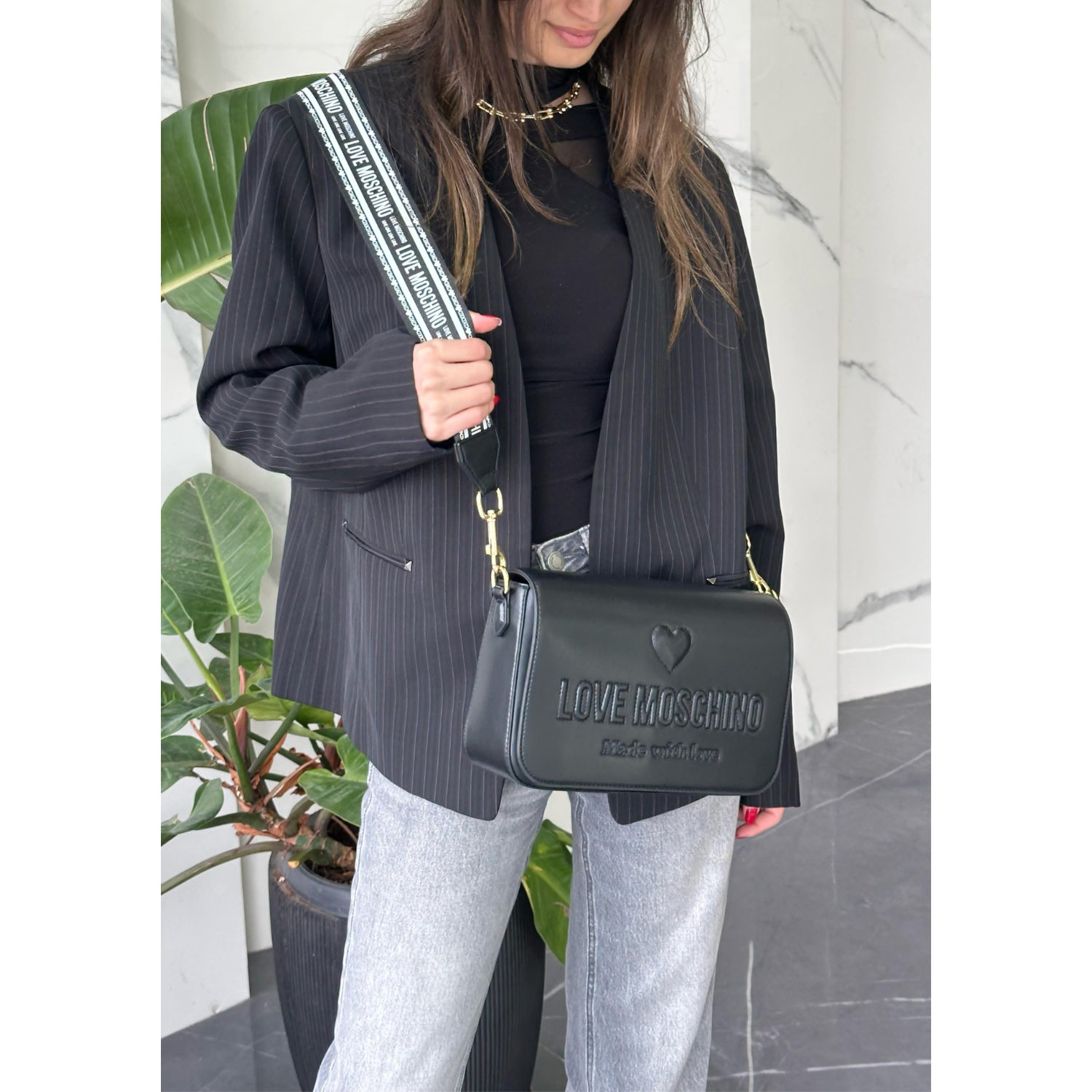 LOVE MOSCHINO LOGO EMBOSSED CROSSBODY BAG