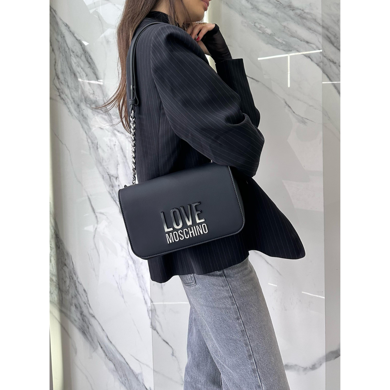 LOVE MOSCHINO LOGO PLAQUE CROSSBODY BAG