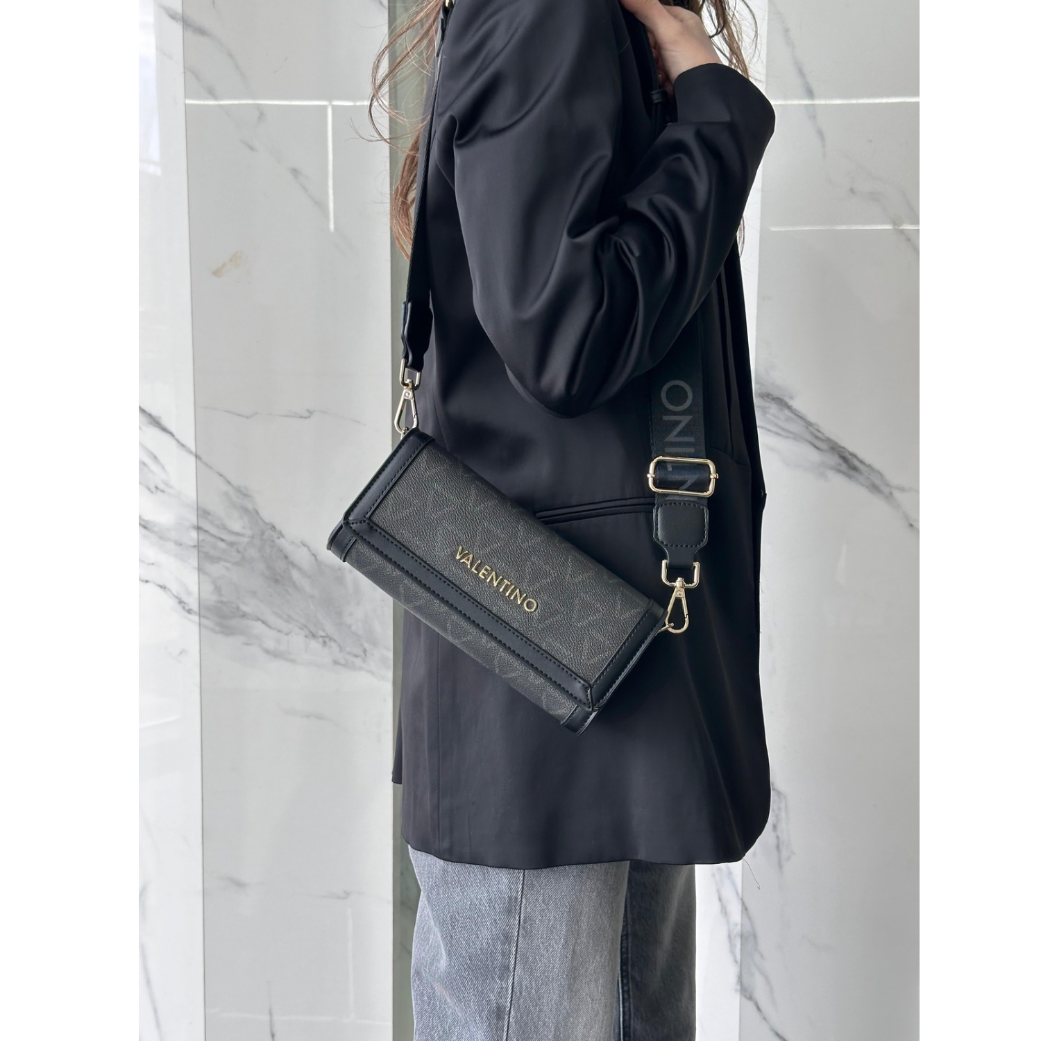 Carry your essentials in style with the MARIO VALENTINO LUITO CROSSBODY BAG. Featuring a bold LOGO MANIA design, this bag adds a touch of luxury to any outfit. With its compact size and crossbody strap, it's perfect for on-the-go fashionistas. Elevate your look with this iconic bag.